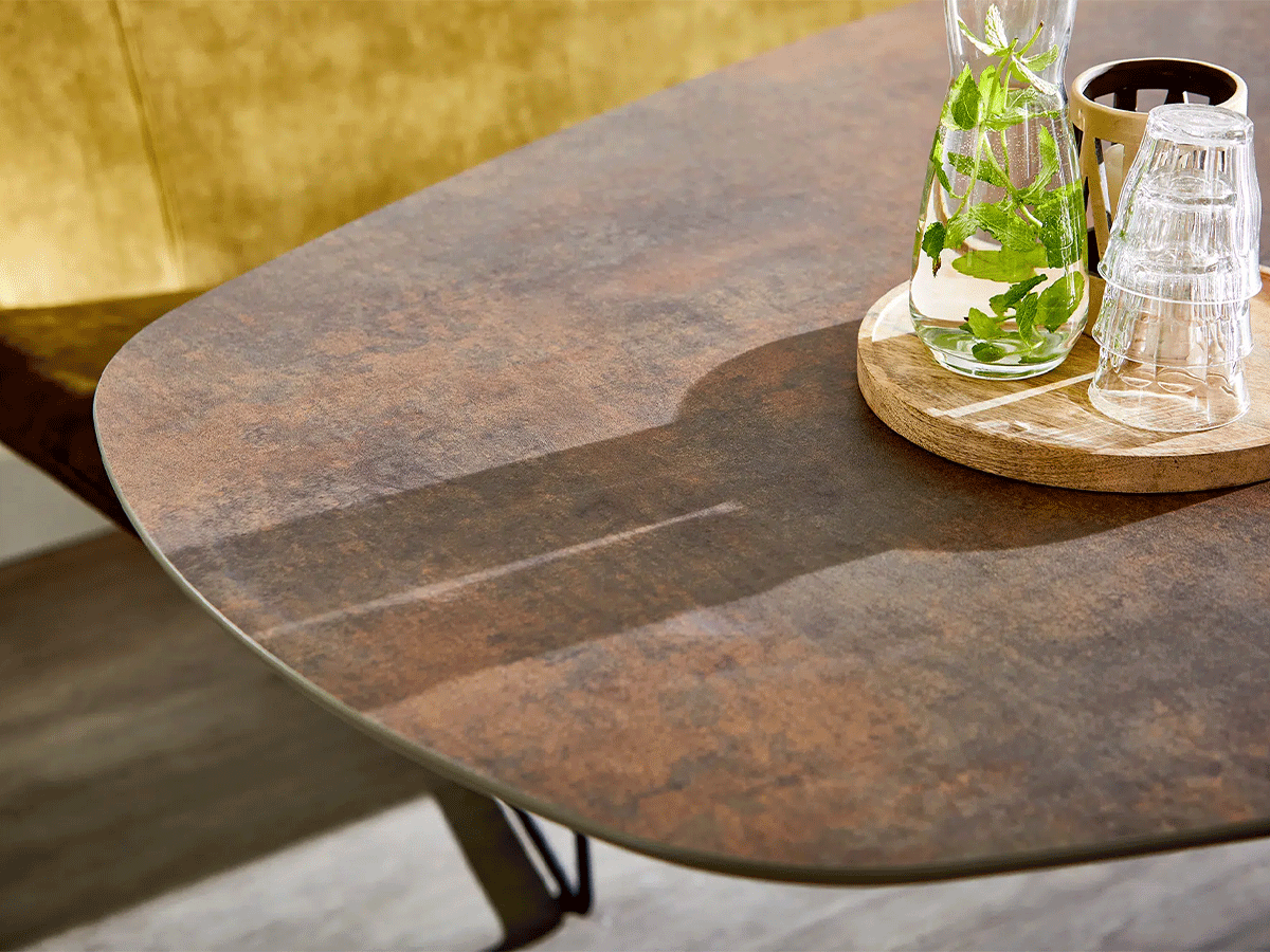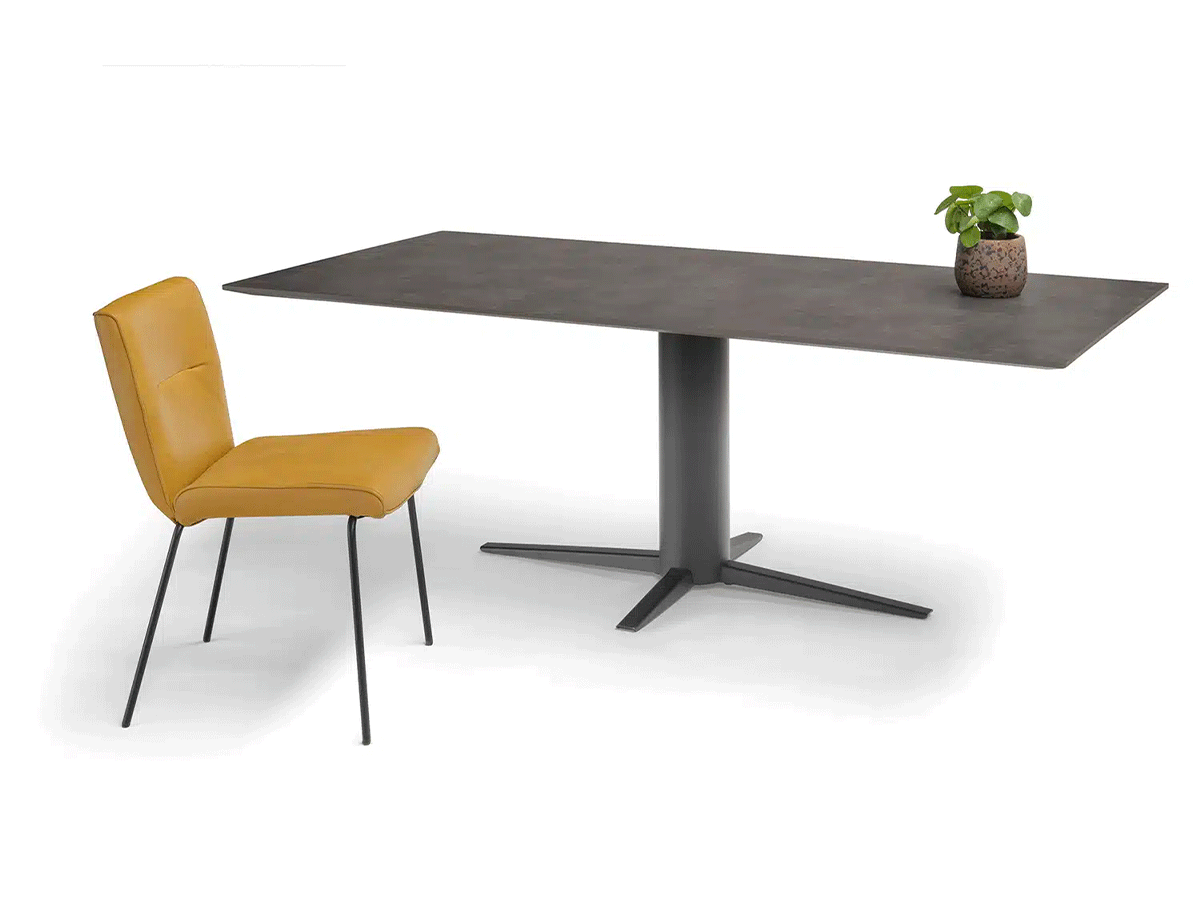 Ook in afmetingen en bladen biedt de Storq flexibiliteit. Het tafelblad is verkrijgbaar van 180 tot en met 260 cm en kan uitgevoerd worden in keramiek, HPL, Fenix of massief hout. Zo stelt u eenvoudig uw ideale eettafel samen.