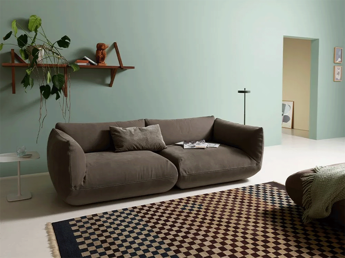 Deze bank straalt een bijzondere vorm van eenvoud uit: geen overbodige details, maar pure vormen die ruimte geven aan ontspanning en samenzijn.
