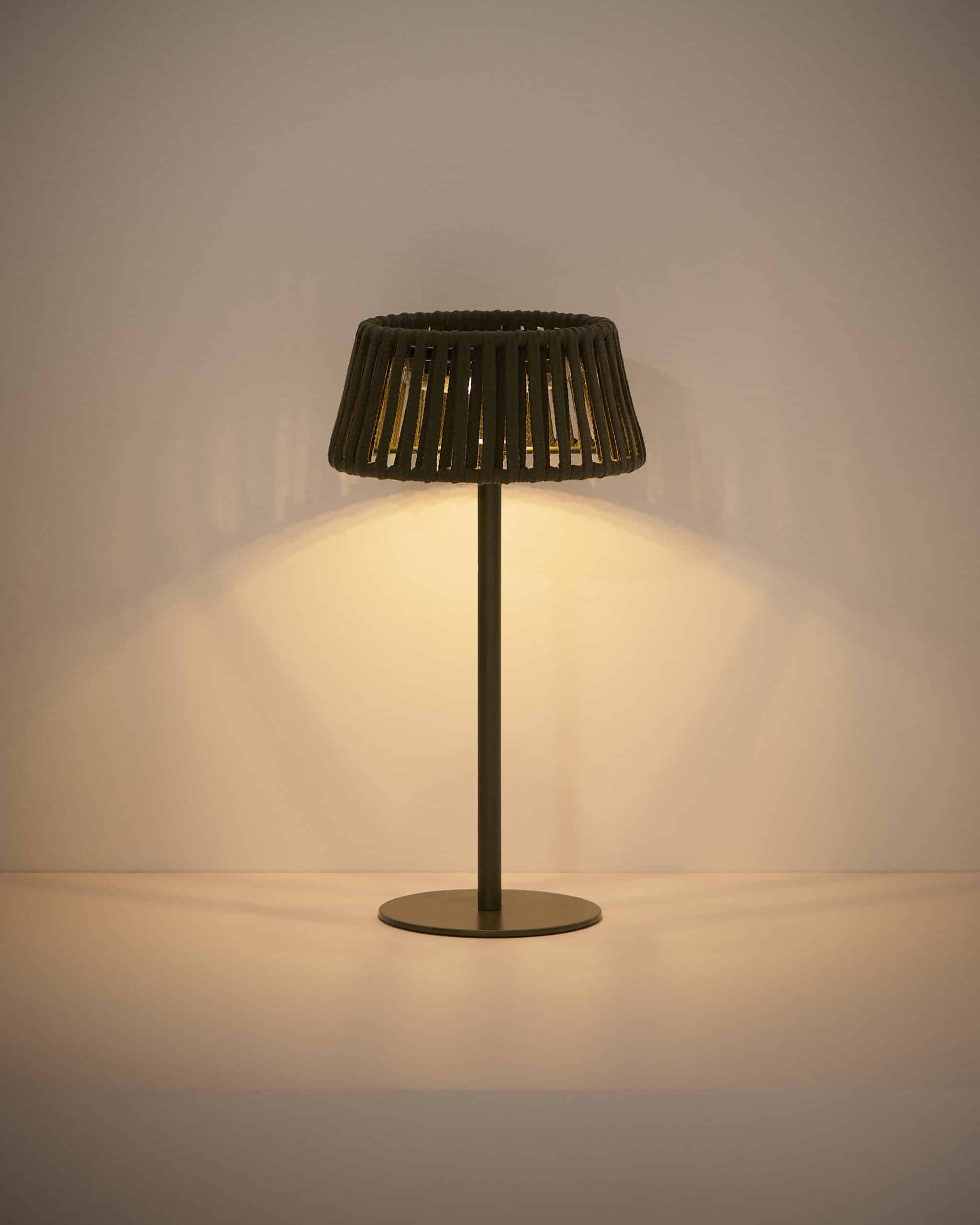 Aldet is een draagbare tafellamp op zonne-energie, een veelzijdige en elegante verlichtingsoplossing die speciaal is ontworpen voor buitenruimtes. Door zijn lampenkap van touw verlicht deze lamp niet alleen, maar wordt ook elke buitendecoratie aangevuld met een ontspannen en gastvrije stijl. De lamp beschikt over een verwijderbare LED-module op zonne-energie met IP65-bescherming, geschikt voor buitengebruik. Het licht kan worden aangepast in zowel intensiteit als warmte door middel van een geïntegreerde knop. De Sarlan LED-reservemodule is apart verkrijgbaar. De lamp is compatibel met de Volian afstandsbediening, waarmee je meerdere lampen tegelijk kunt bedienen en de verlichting eenvoudig kunt aanpassen. Een functioneel element, ontworpen om comfortabel van het buitenleven te genieten.