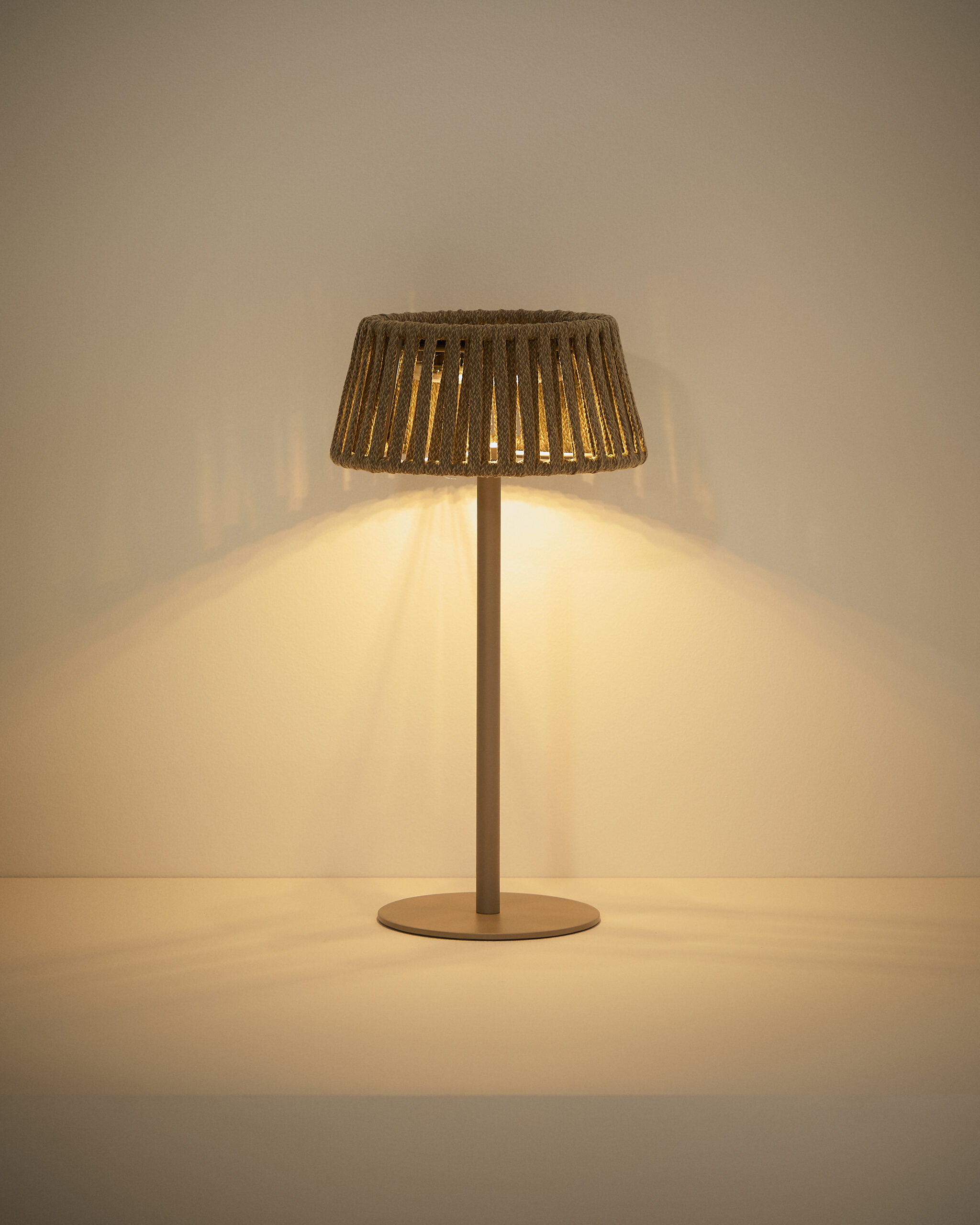 Aldet is een draagbare tafellamp op zonne-energie, een veelzijdige en elegante verlichtingsoplossing die speciaal is ontworpen voor buitenruimtes. Door zijn lampenkap van touw verlicht deze lamp niet alleen, maar wordt ook elke buitendecoratie aangevuld met een ontspannen en gastvrije stijl. De lamp beschikt over een verwijderbare LED-module op zonne-energie met IP65-bescherming, geschikt voor buitengebruik. Het licht kan worden aangepast in zowel intensiteit als warmte door middel van een geïntegreerde knop. De Sarlan LED-reservemodule is apart verkrijgbaar. De lamp is compatibel met de Volian afstandsbediening, waarmee je meerdere lampen tegelijk kunt bedienen en de verlichting eenvoudig kunt aanpassen. Een functioneel element, ontworpen om comfortabel van het buitenleven te genieten.