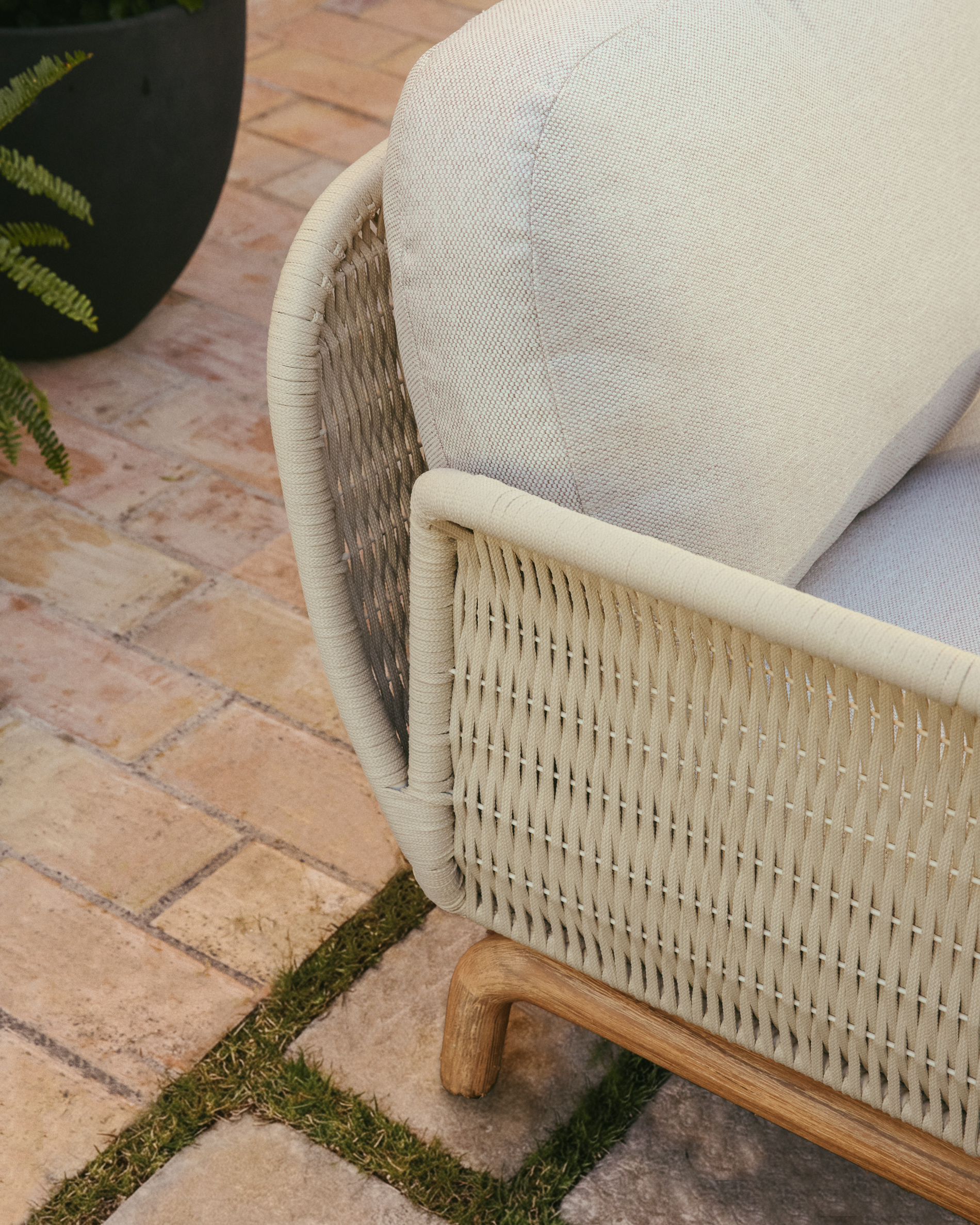 De Alipa bank weerspiegelt de harmonie tussen comfort, duurzaamheid en tijdloos design. De structuur is gemaakt van massief acaciahout met unieke nerven waardoor elk meubel karakter en een evenwichtige aanwezigheid biedt. De zitting is gemaakt van UV-bestendig, handgeweven touw en behoudt zijn stevigheid en uiterlijk bij voortdurend gebruik. Inclusief kussens met afneembare hoezen voor gemakkelijk onderhoud en schoonmaken. We raden aan om de kussens op te bergen op regenachtige dagen om ze in na verloop van tijd in goede staat te houden. Om het hout in de best mogelijke conditie te houden, raden we aan om ten minste eenmaal per jaar Sterina houtbeschermer aan te brengen. Het hout is FSC™ 100%-gecertificeerd en afkomstig uit verantwoord beheerde bossen. Een comfortabel en sereen meubel, ontworpen om zowel binnen als buiten van de rust te genieten.