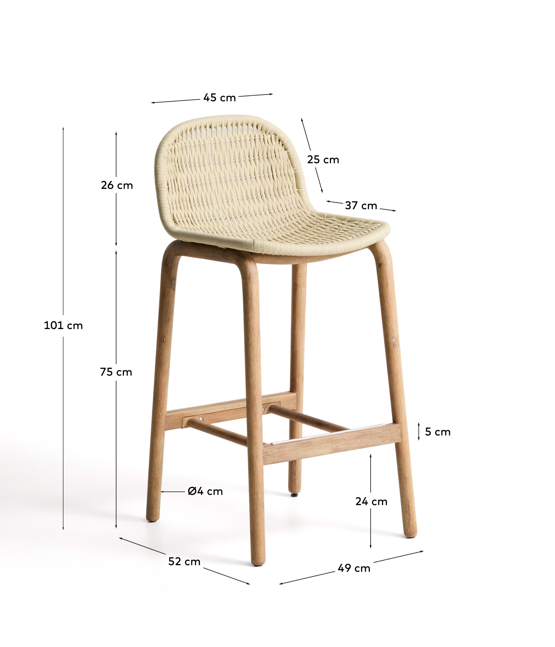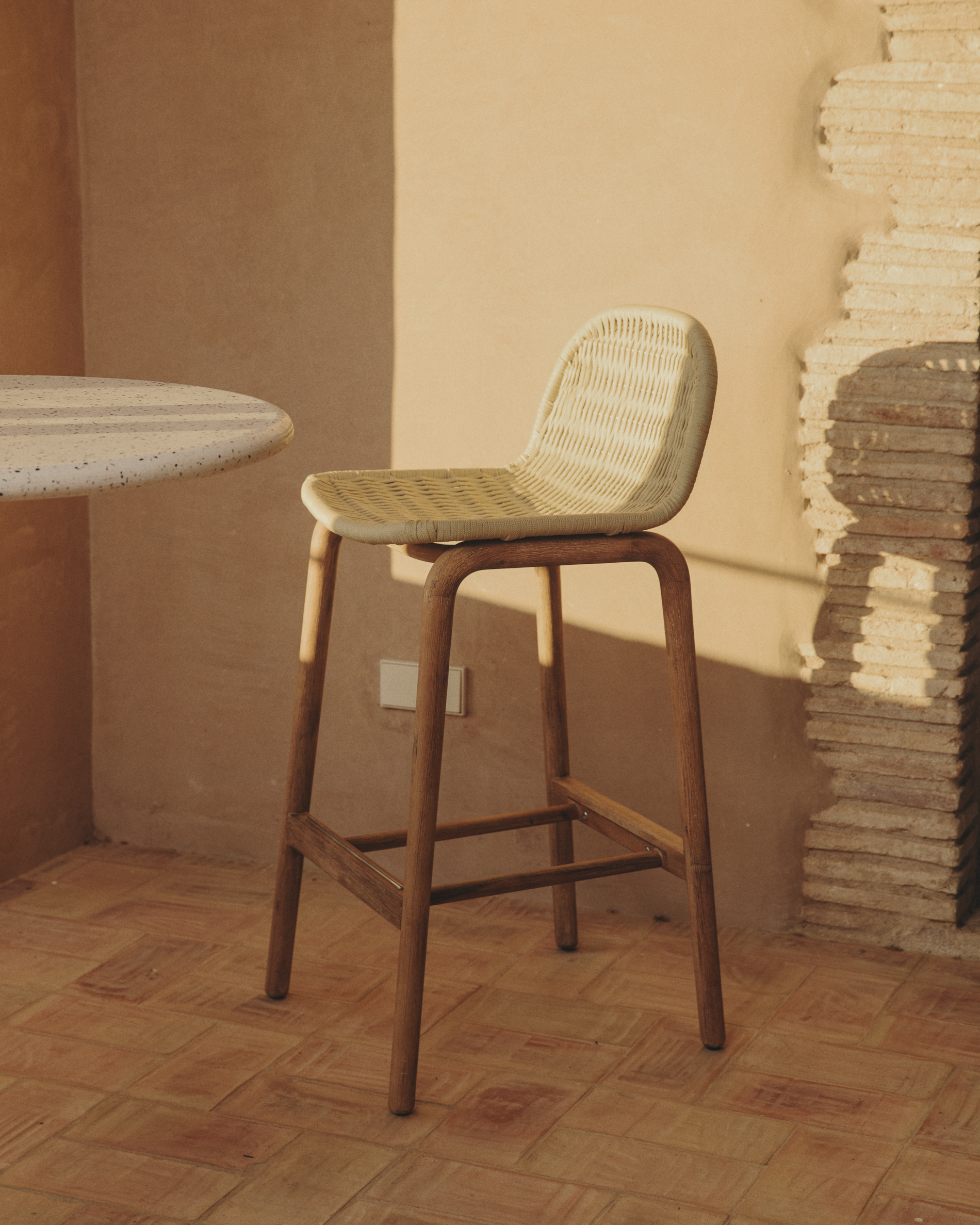 De Alipa kruk combineert proportie, weerstand en een ontwerp dat zich op natuurlijke wijze aanpast aan verschillende ruimtes. Gemaakt van massief acaciahout met unieke nerven waardoor elk meubel anders is en een evenwichtige aanwezigheid biedt. De zitting is gemaakt van UV-bestendig, handgeweven touw en behoudt zijn sterkte en uiterlijk bij voortdurend gebruik. Dankzij het veelzijdige ontwerp kan het zowel binnen als buiten worden gebruikt en zorgt het voor samenhang en continuïteit tussen beide omgevingen. Om het hout in de best mogelijke conditie te houden, raden we aan om ten minste eenmaal per jaar Sterina houtbeschermer aan te brengen. Het hout is FSC™ 100%-gecertificeerd en afkomstig uit verantwoord beheerde bossen.