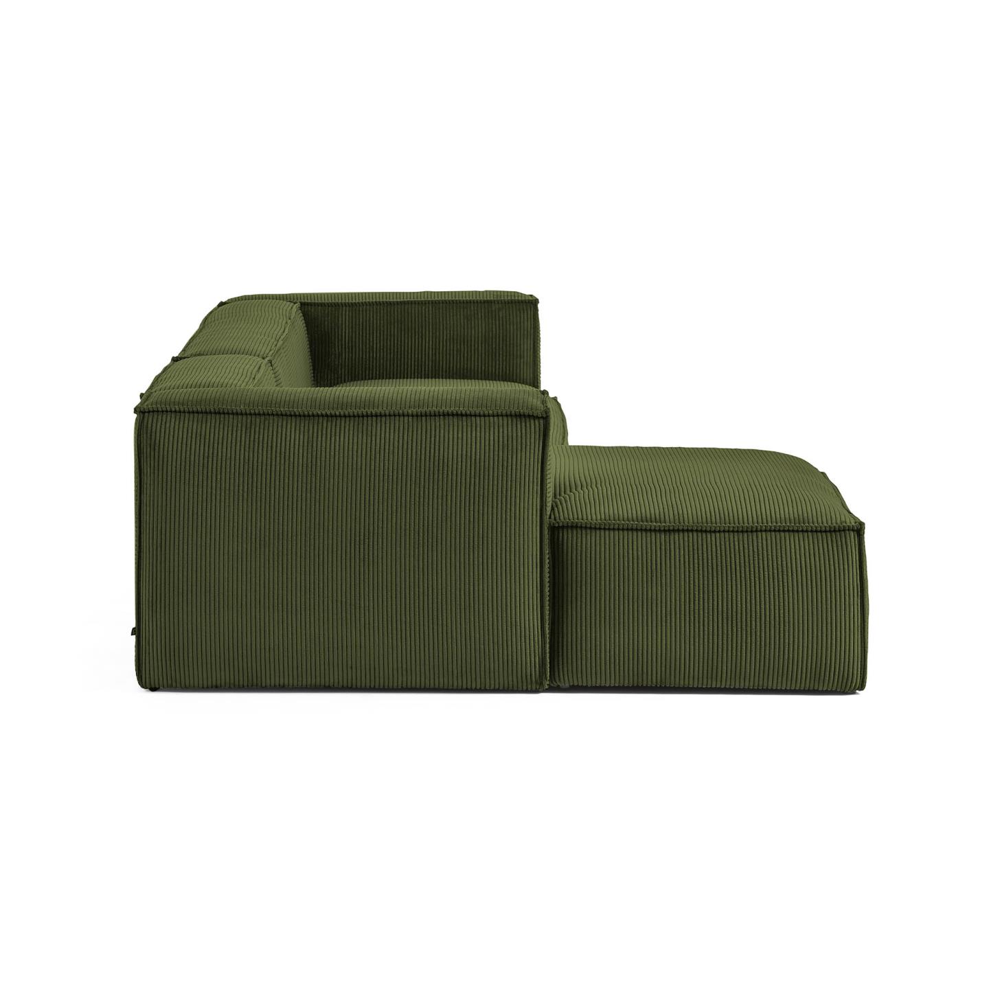 Kave Home Blok 3-zitsbank in dik groen ribfluweel en met chaise longue links 300 cm FSC Mix Credit
