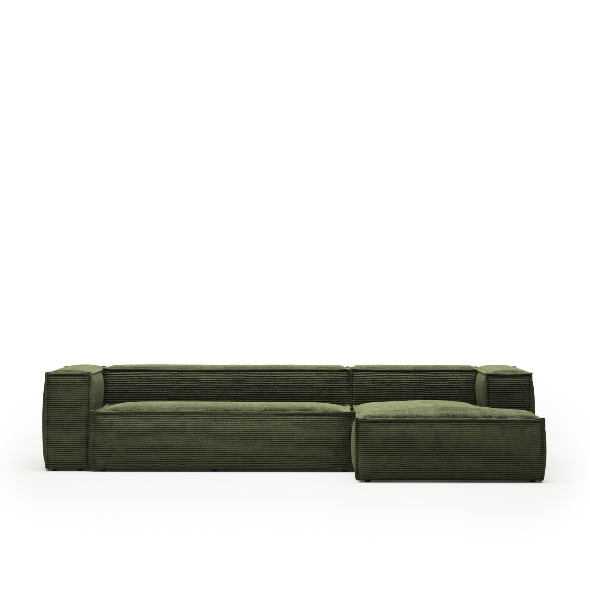 Deze iconische collectie wordt gedefinieerd door de brede proporties en gestructureerde lijnen. Daardoor ontstaat een object dat in elke omgeving stabiliteit en sereniteit uitstraalt. De poten hebben een onzichtbaar effect en geven de bank een gevoel van visuele lichtheid. Dit benadrukt zijn aanwezigheid en wordt de hedendaagse esthetiek van je woonkamer versterkt met een uniek en tijdloos ontwerp. De Blok-bank combineert elegantie en functionaliteit zodat hij op natuurlijke wijze in moderne ruimtes past. De bekleding is gemaakt van dik ribfluweel, dat zacht aanvoelt en zeer goed bestand is tegen slijtage en licht. Het biedt een omhullende textuur en is uitzonderlijk duurzaam. Het is perfect voor dagelijks gebruik en de schoonheid blijft intact in de loop van de tijd. De middelzachte zitting combineert een basis van 30 kg/m³ zacht schuim met een laag hard schuim van 20 kg/m³ en een toplaag van 20 kg/m³ zacht schuim. Dit zorgt voor de perfecte balans tussen comfort en ondersteuning, ideaal voor zowel alledaagse ontspanning als het ontvangen van gasten. De rugleuning biedt extra comfort dankzij de kern van 20 kg/m³ hard schuim bedekt met 20 kg/m³ zacht schuim. Hij nodigt je uit om achterover te leunen en je te ontspannen. Voor een nog comfortabelere ervaring raden wij u aan om het zitcomfort aan te vullen met de kussens uit de collectie. Deze zijn apart verkrijgbaar. De interne structuur van vurenhout is FSC Mix Credit gecertificeerd, gemaakt van een combinatie van materialen uit FSC-gecertificeerde bossen en FSC-gecontroleerd hout. Bovendien garandeert lokale productie in Europa hoge kwaliteitsnormen en vermindert het de impact op het milieu. De leverancier van de stoffen is OEKO-TEX® STANDARD 100 gecertificeerd voor een ecologisch veilige en milieuverantwoorde productie. Blok is de must-have die opvalt door zijn ontwerp, comfort en vermogen om elke kamer te transformeren.