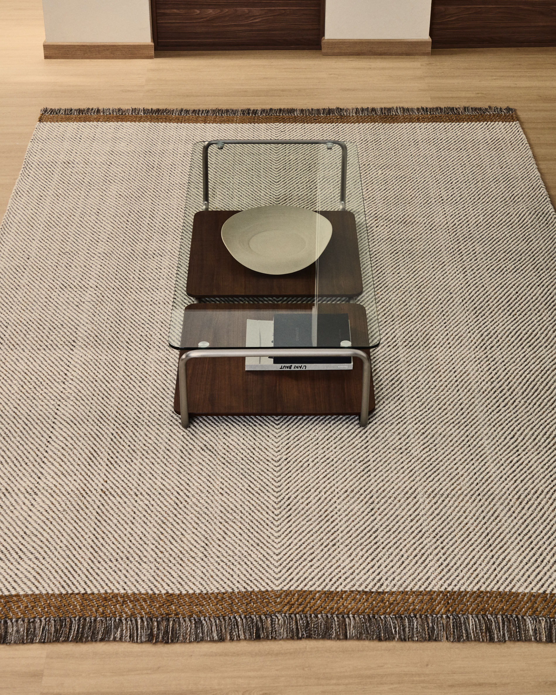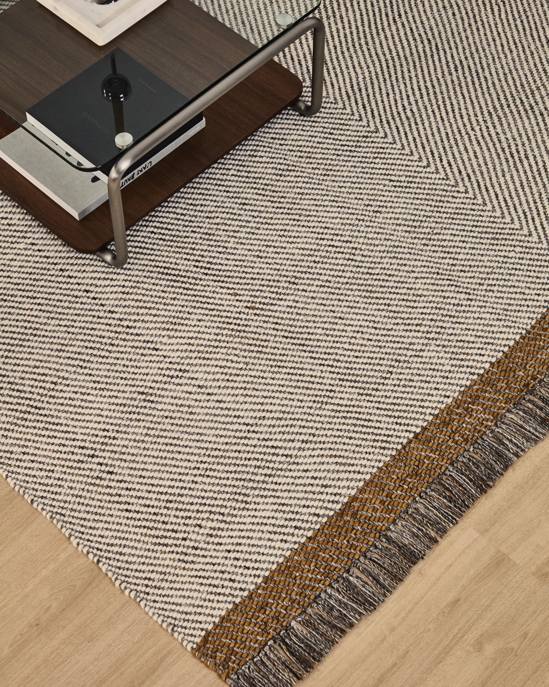 Dit wollen vloerkleed valt op door het visgraatmotief, dat dynamiek en textuur toevoegt. Gemaakt van een zorgvuldig geselecteerde wolmix biedt het een comfortabel gevoel onder de voeten en een warme afwerking die de sfeer transformeert. Elk stuk is met de hand geweven, waardoor het een exclusief product is met kleine variaties die het ambachtelijke karakter versterken. Het kleed kan wat vezels verliezen — een natuurlijk kenmerk van wol. Om het er onberispelijk uit te laten zien, raden we aan altijd in de richting van de vezel te stofzuigen en eventuele losse draadjes voorzichtig af te knippen met een schaar.