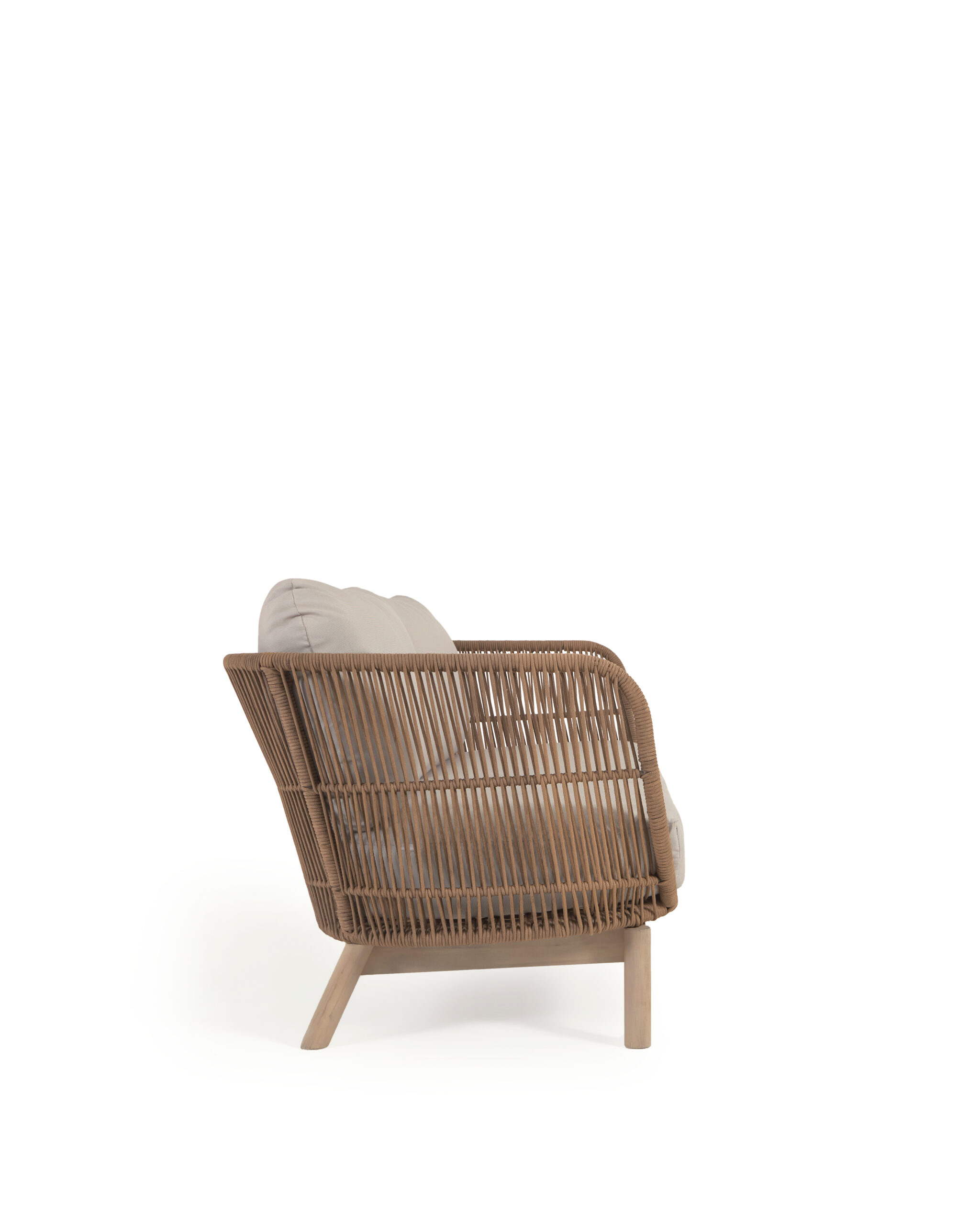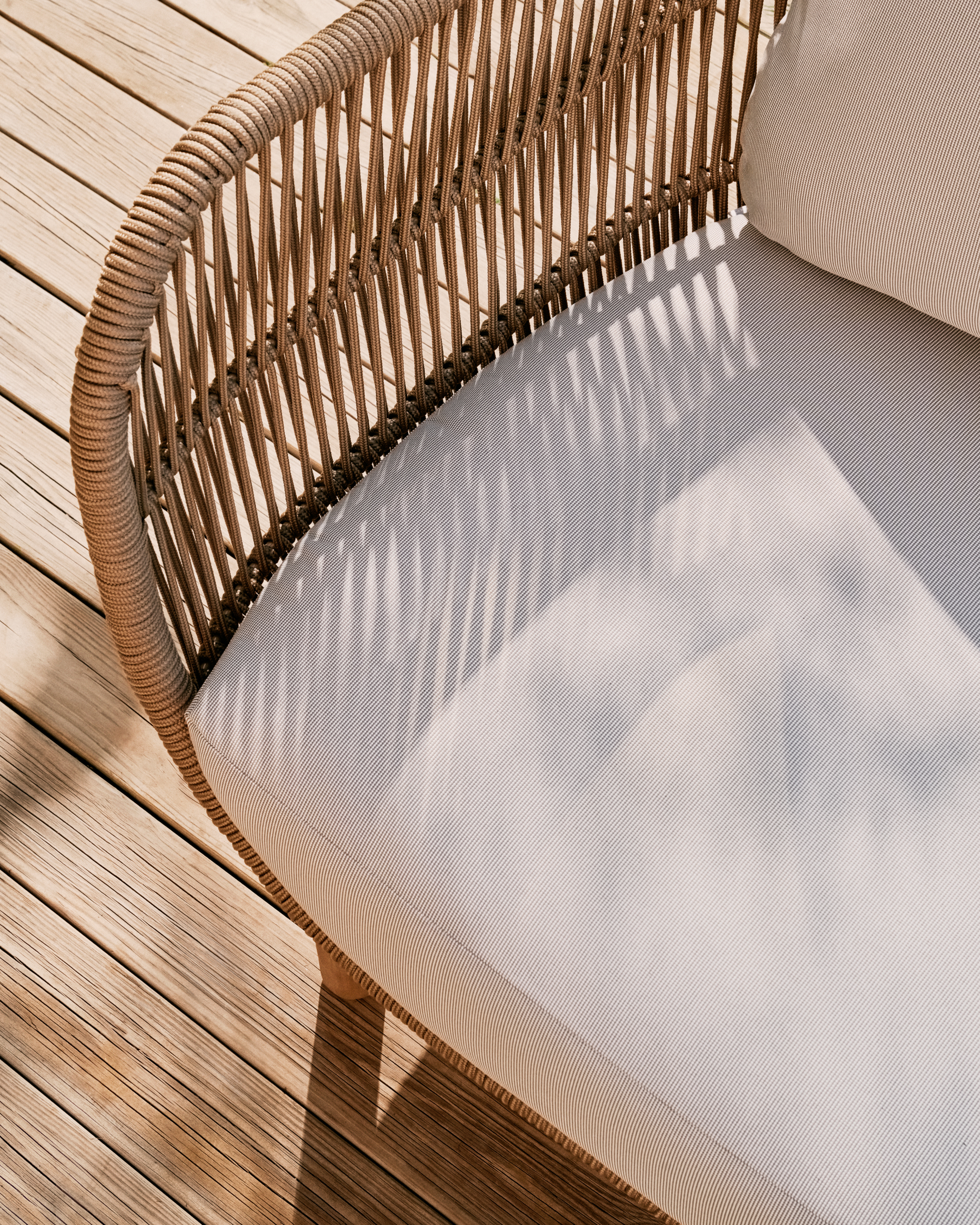 Catalina vult je overdekte buitenruimtes met tropische stijl. Hij valt op door zijn gedetailleerde ontwerp, met een massief duurzaam acaciahouten frame en handgevlochten touw, beide UV-bestendig. Het design kan binnen en buiten worden geplaatst.