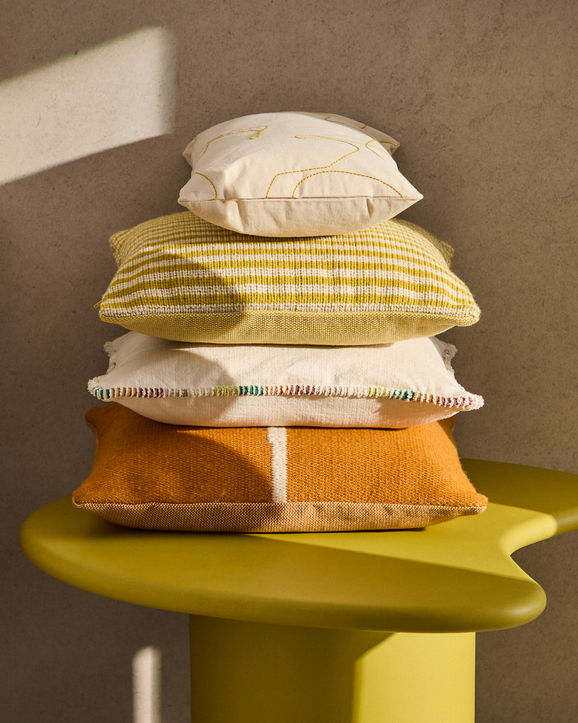 De Daila kussenhoes is gemaakt van 100% PET-vezels, een bestendig materiaal dat wordt verkregen uit gerecyclede flessen. Deze stof combineert bestendigheid en zachtheid en is gemakkelijk schoon te maken en te onderhouden, zelfs buiten. Dit product is handgemaakt, dus het kan lichte variaties vertonen die het een uniek karakter geven. Het grafische Ikat-dessin voegt textuur en visuele diepte toe en geeft elke ruimte een eigen karakter, zowel binnen als buiten.