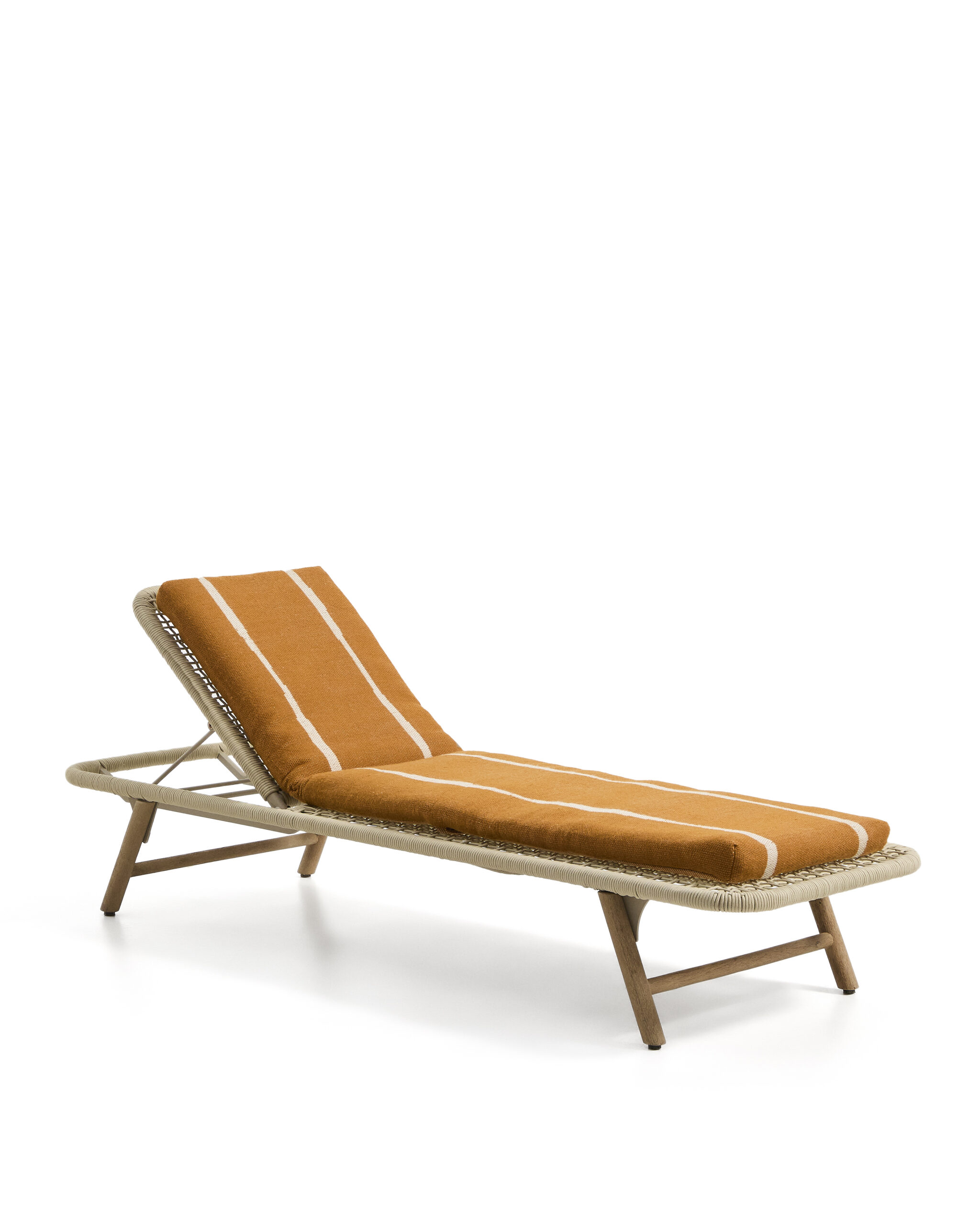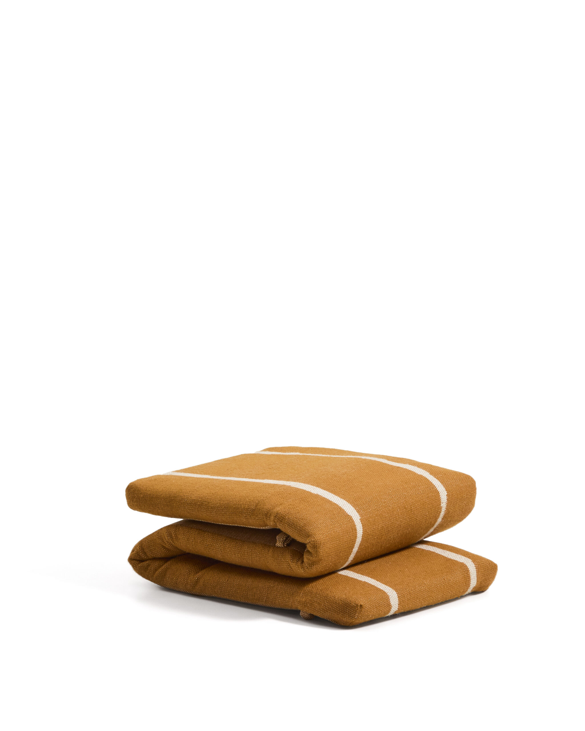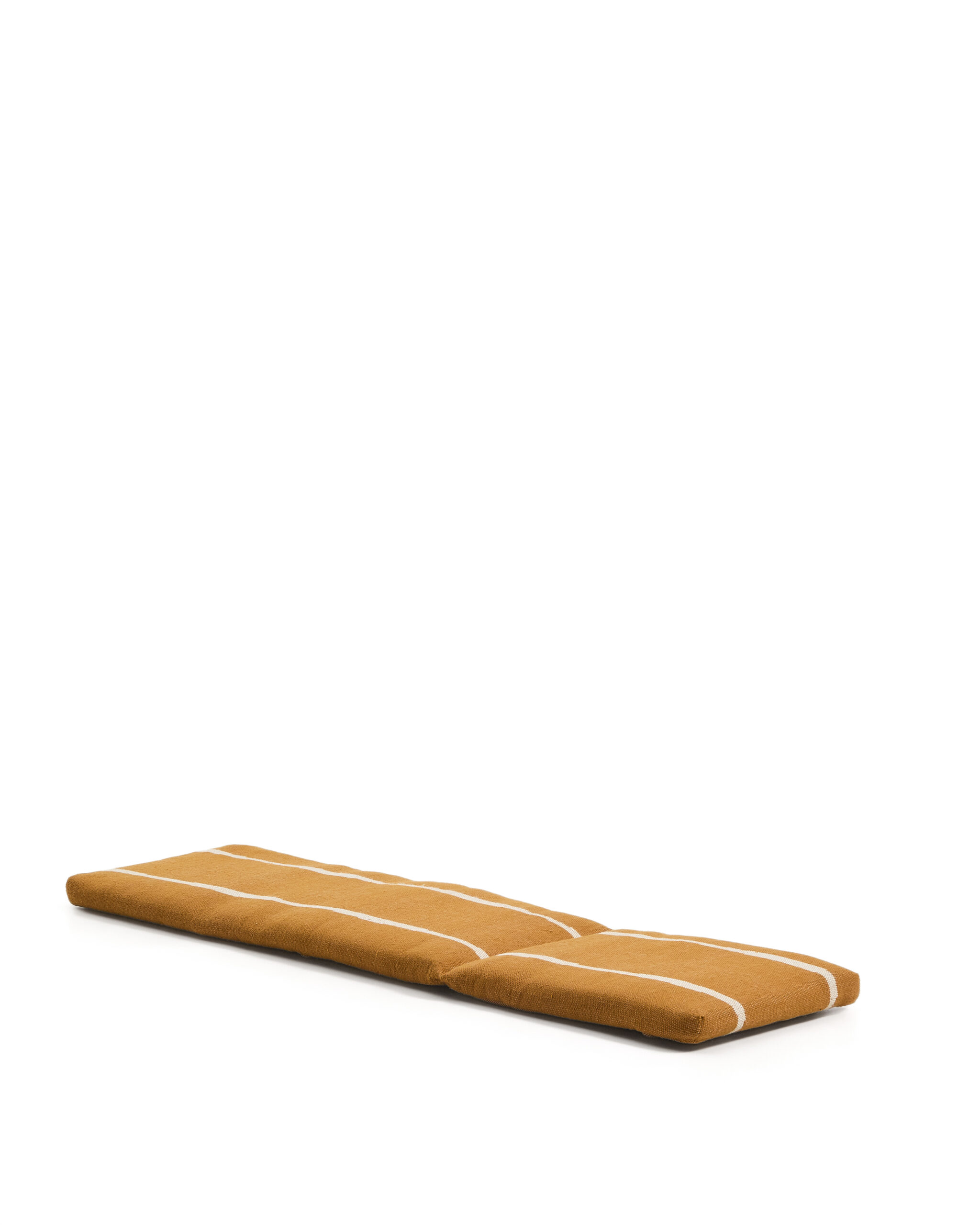 Het Daila ligbedkussen is gemaakt van 100% PET-vezels, een sterk materiaal dat wordt verkregen uit gerecyclede flessen en bestendigheid en zachtheid combineert. Het kussen past perfect bij op het Dandara ligbed en is gemakkelijk schoon te maken en te onderhouden, zelfs buiten. Dit product is handgemaakt, dus het kan lichte variaties vertonen die het een uniek karakter geven. Het grafische Ikat-dessin voegt textuur en visuele diepte toe en geeft elke ruimte een eigen karakter, binnen of buiten.