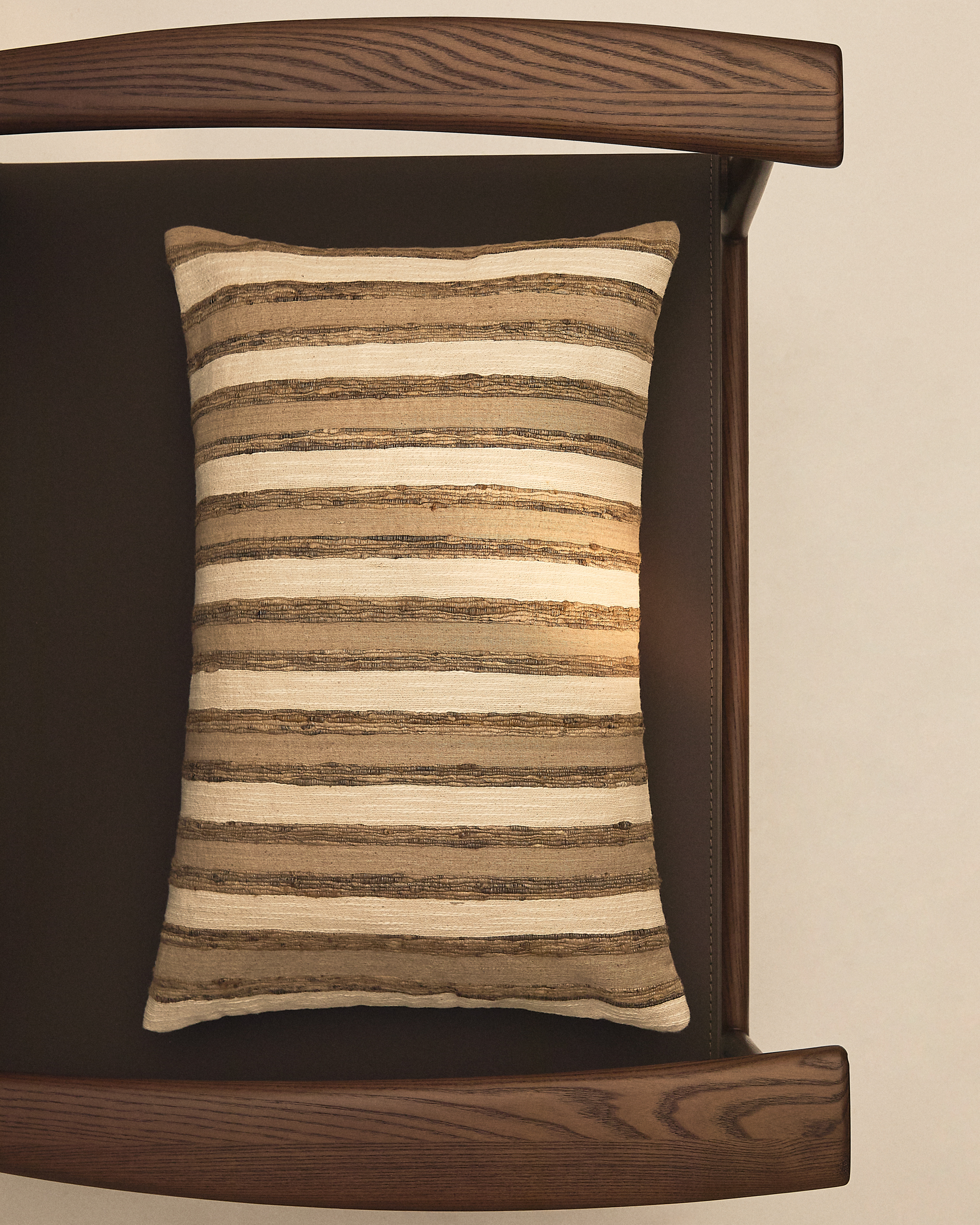Deze kussenhoes is gemaakt van een exclusieve hoogwaardige zijdemix, geselecteerd om zijn unieke zachtheid en hoge weerstand, perfect voor dagelijks gebruik. De hypoallergene eigenschappen maken het een ideale keuze voor wie op zoek is naar comfort en welzijn in elk detail van het huis. Het ontwerp heeft een gestreept jacquardpatroon voor een geraffineerde en tijdloze look. Elk product wordt met de hand gemaakt op traditionele weefgetouwen, waardoor aandacht voor detail en een onberispelijke afwerking gegarandeerd zijn.