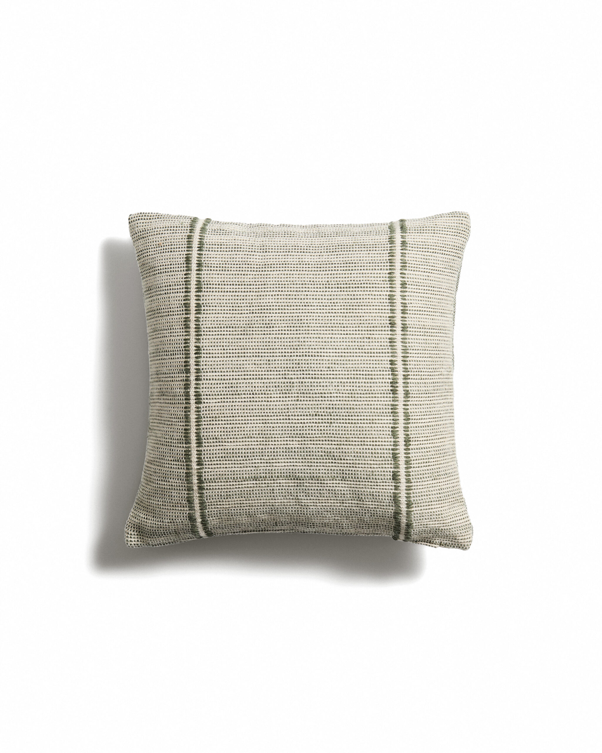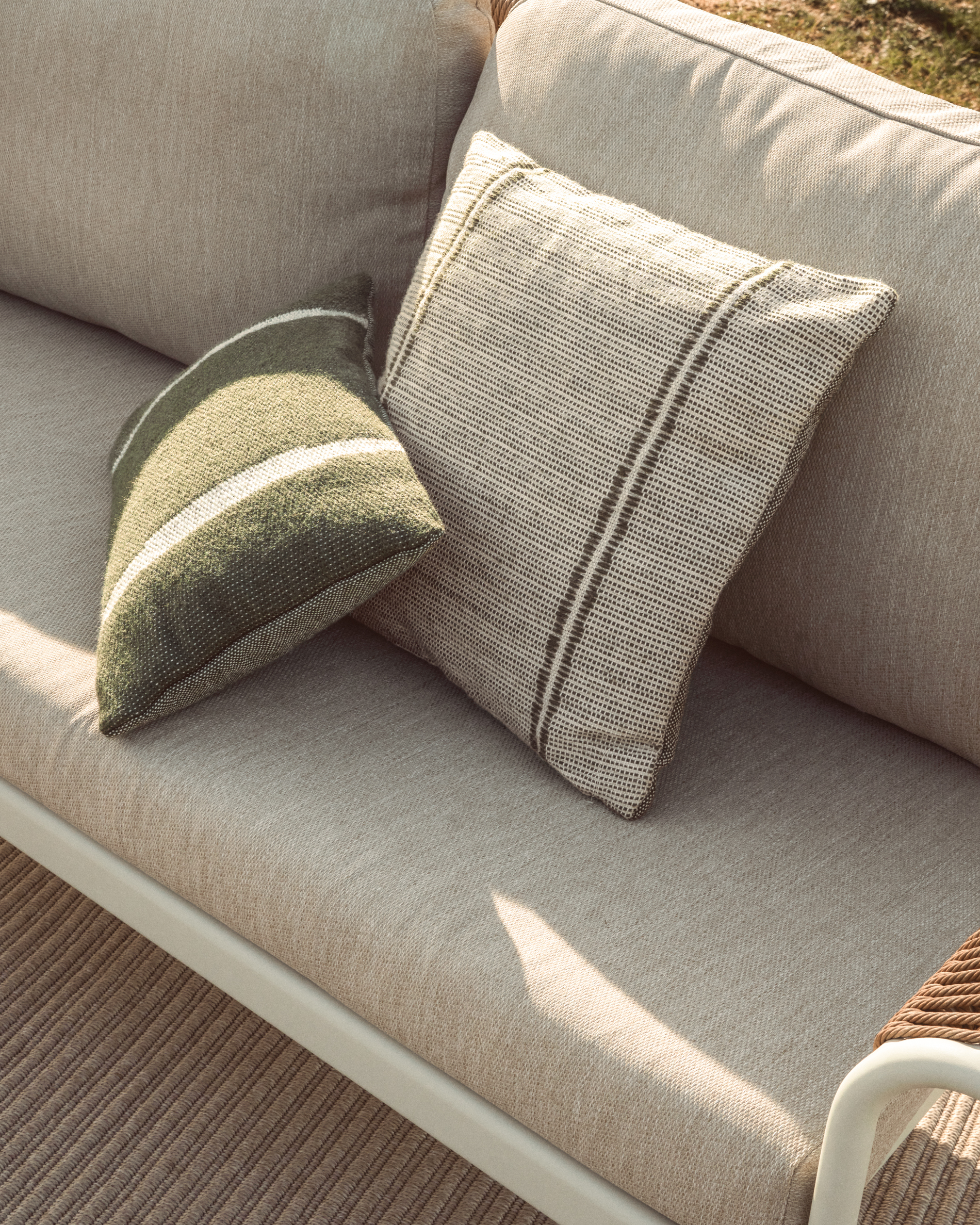De Drati kussenhoes is gemaakt van 100% PET-vezels, een materiaal afkomstig van gerecyclede flessen dat bestendigheid en zachtheid combineert. Deze stof is gemakkelijk schoon te maken en behoudt zijn uiterlijk bij buitentemperaturen, waardoor hij praktisch en bestendig is.
