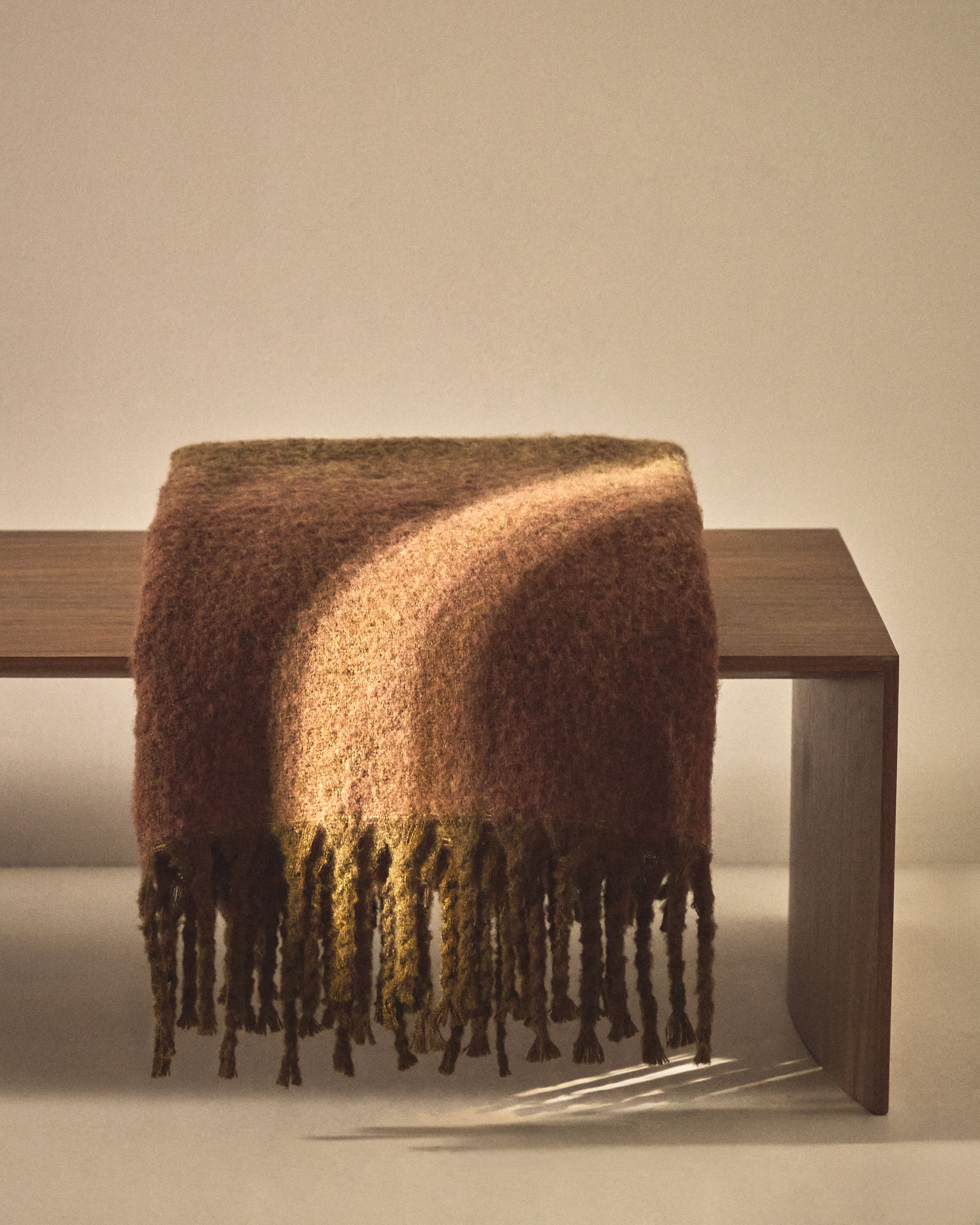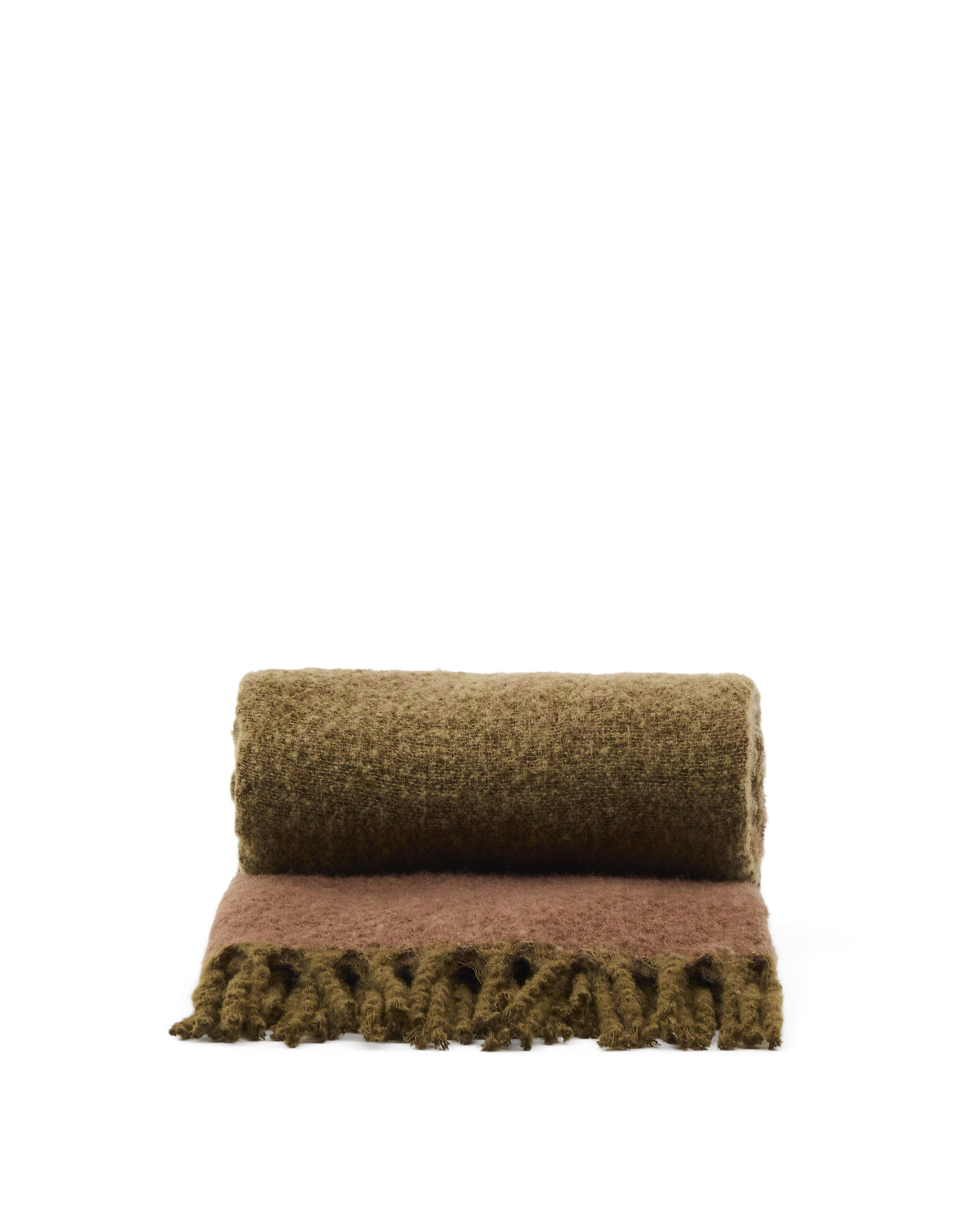 Deken gemaakt van 100% gerecycled acryl met een afwerking van woleffect. Het groene ontwerp met franjes brengt een vleugje kleur en warmte in elke ruimte, waardoor het ideaal is voor de bank, het bed of als decoratieve accessoire. Omdat hij gemaakt is van gerecycled en geborsteld materiaal, kan hij tijdens het eerste gebruik een bepaalde hoeveelheid vezels afgeven. Een veelzijdige en comfortabele optie die comfort en stijl toevoegt aan je huis.