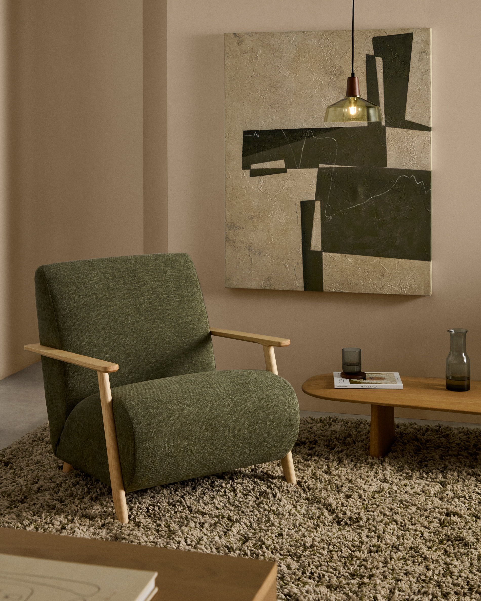 Het ontwerp van deze fauteuil wordt gedefinieerd door zijn eenvoudige, minimalistische karakter. Een informele stijl die wordt bereikt door de combinatie van de zichtbare structuur van de fauteuil, in massief essenhout, en de bekleding.