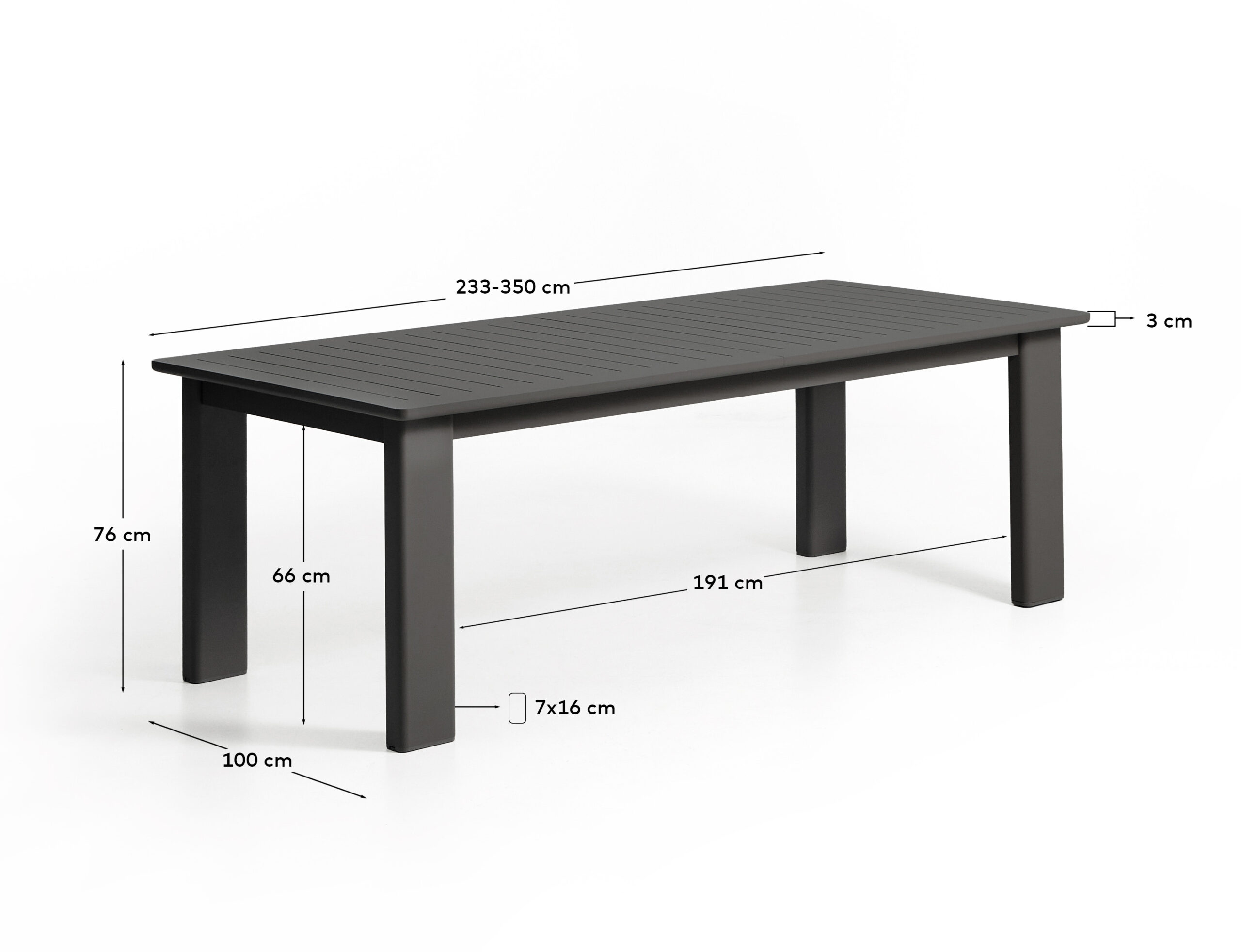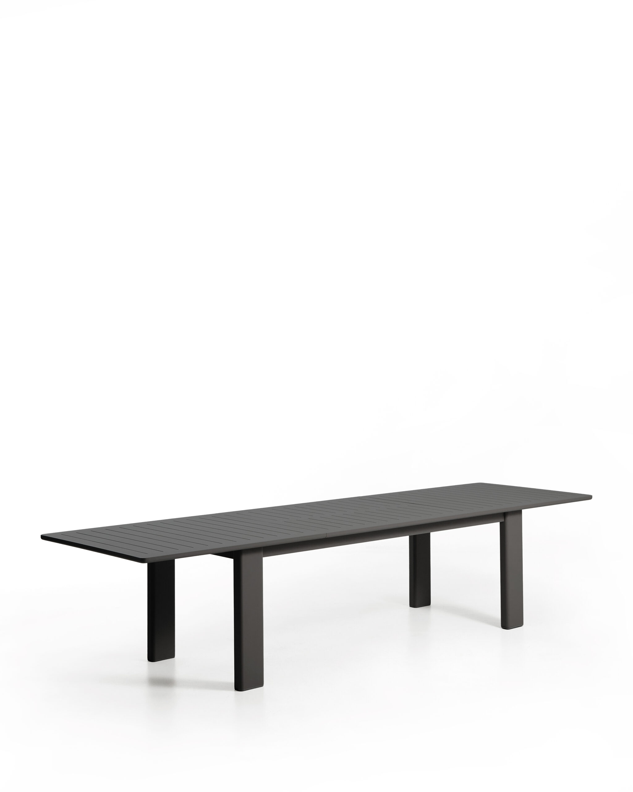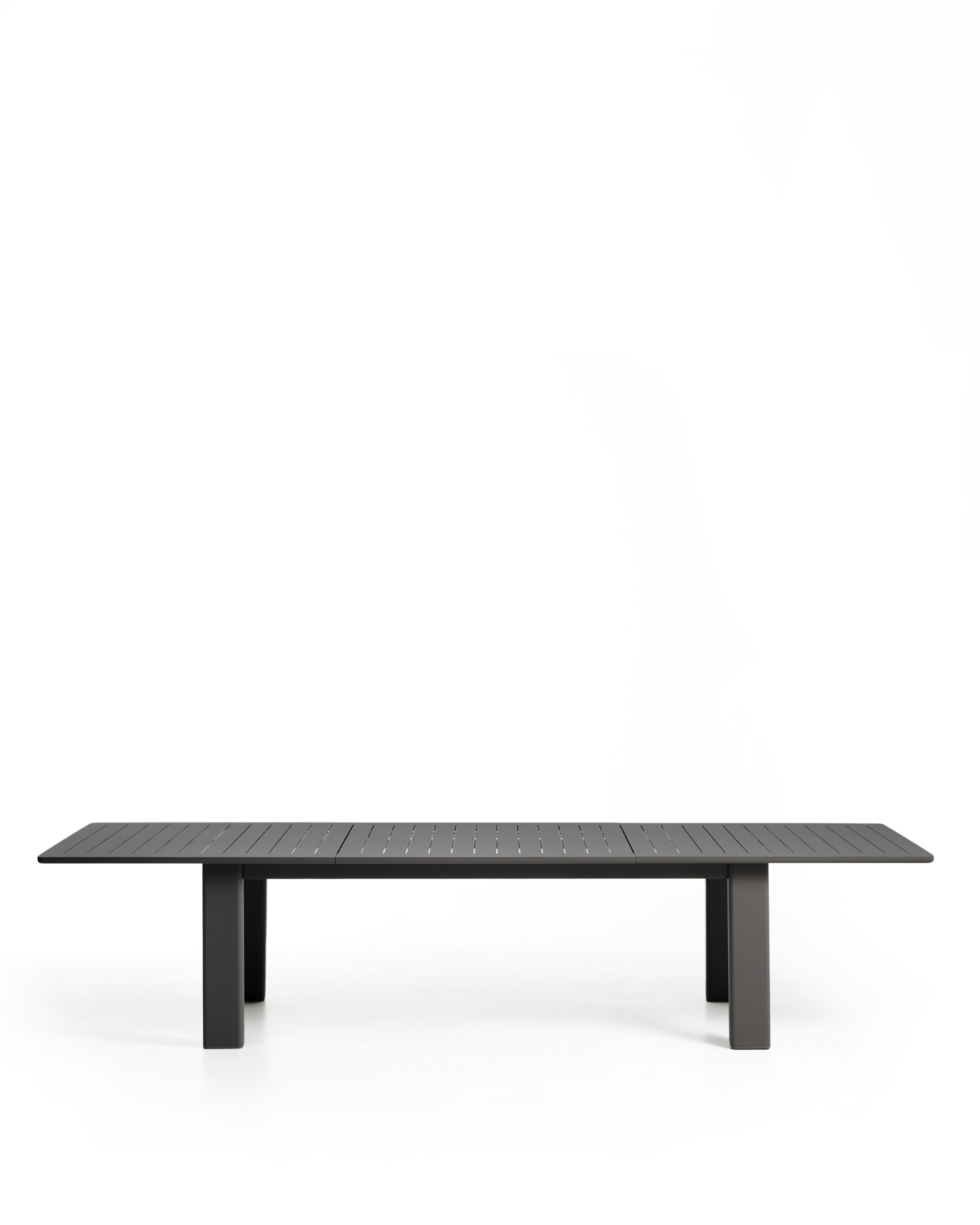 De Livorno uitschuifbare tafel valt op door zijn evenwicht tussen design en functionaliteit. Hij is gemaakt van aluminium en combineert lichtheid met bestendigheid tegen oxidatie, corrosie en blootstelling aan de zon. De poten, met een natuurlijke houtlook, zorgen voor visuele warmte zonder dat dit ten koste gaat van de bestendigheid en het onderhoudsgemak van aluminium. Het uitschuifbare systeem heeft een vlindermechanisme waarmee het eenvoudig te openen is en bevat een verborgen verlengstuk in de tafel, waardoor de grootte van de tafel kan worden aangepast aan de ruimte of het aantal gasten. Bovendien zijn de poten voorzien van plastic beschermers om de vloer te beschermen en de oppervlakken na verloop van tijd in goede staat te houden.