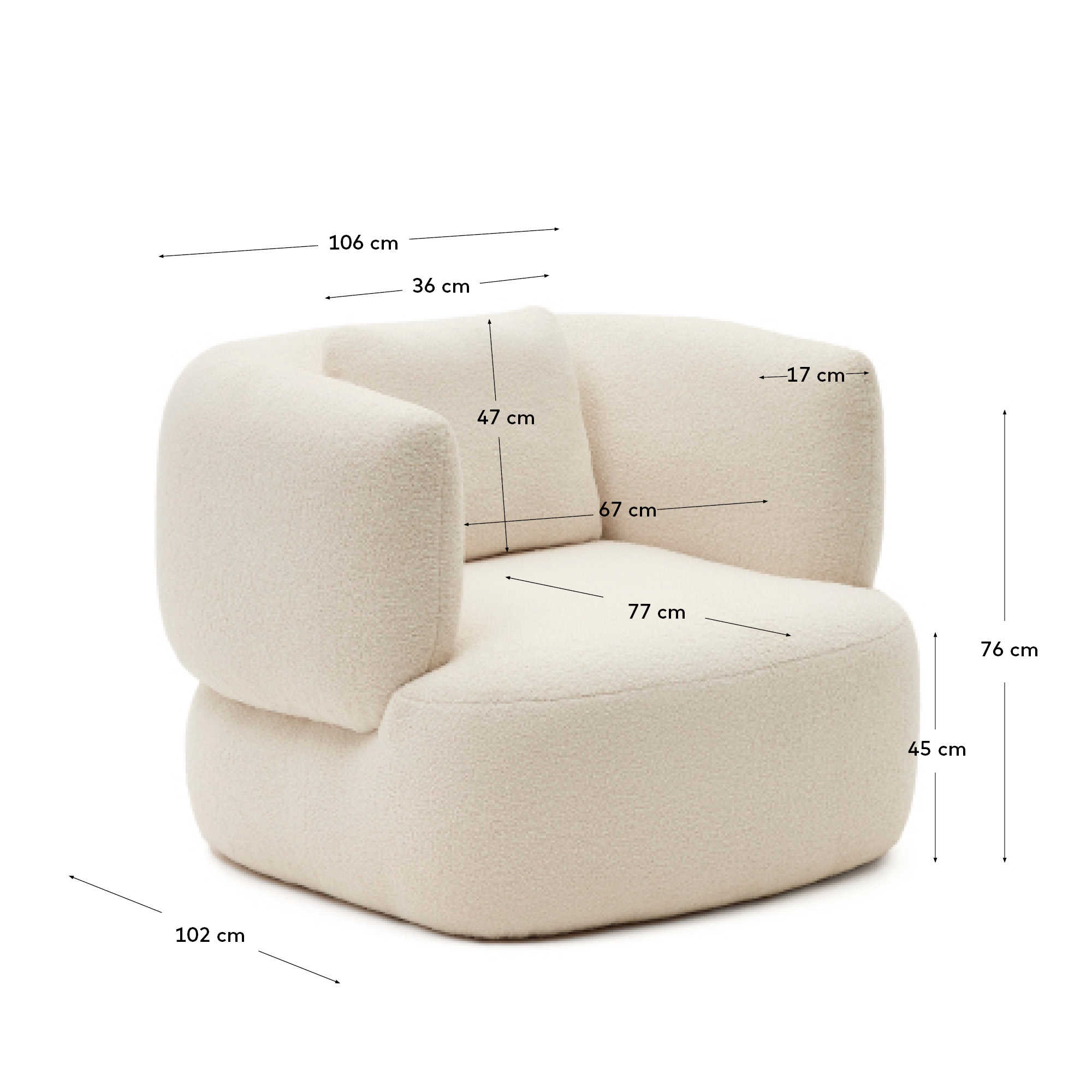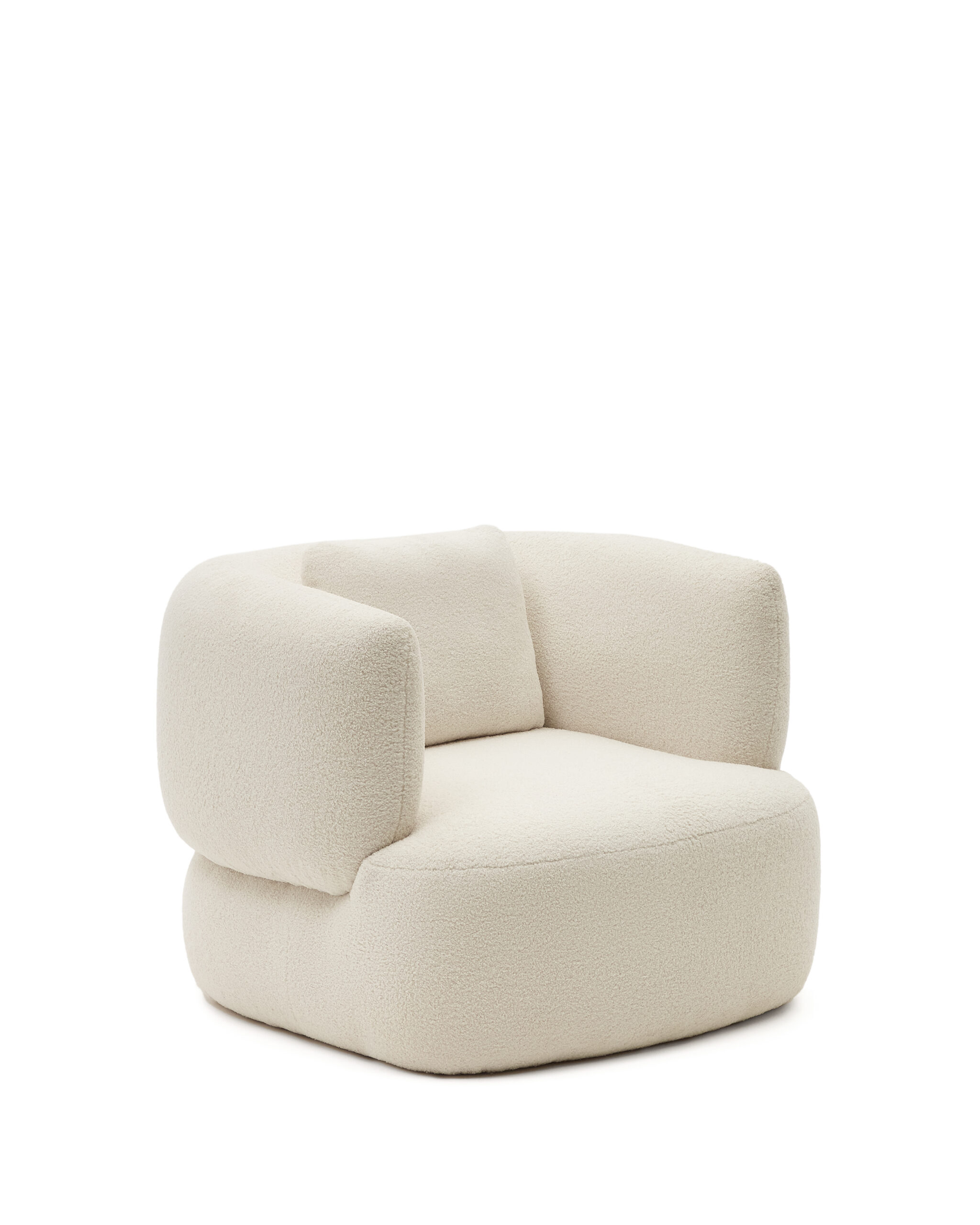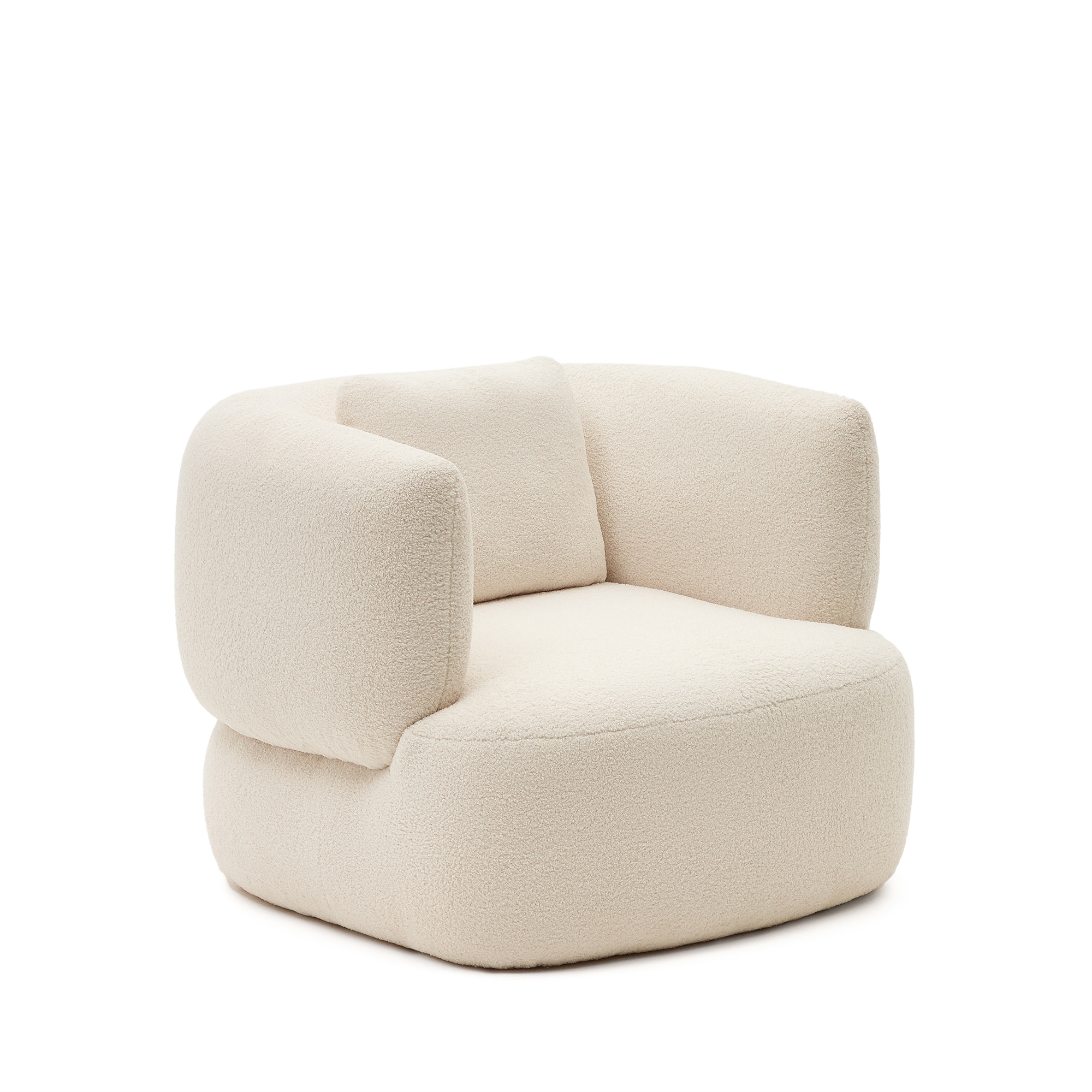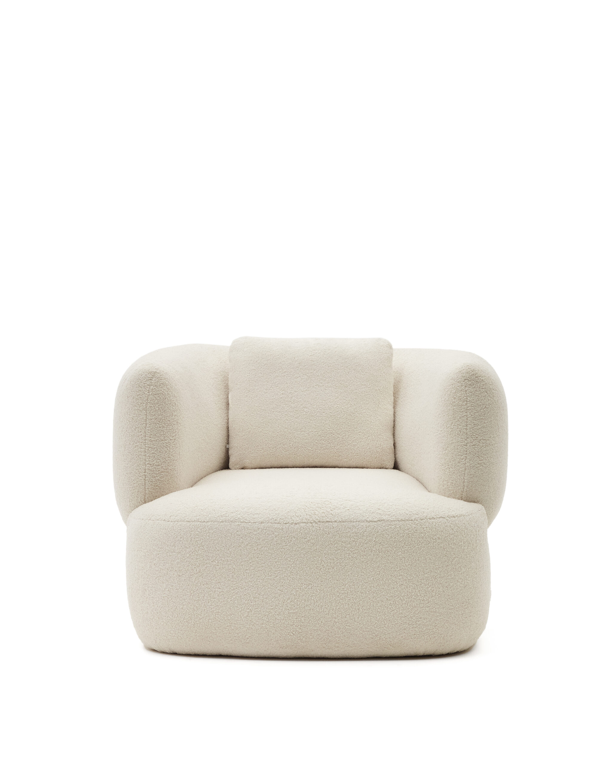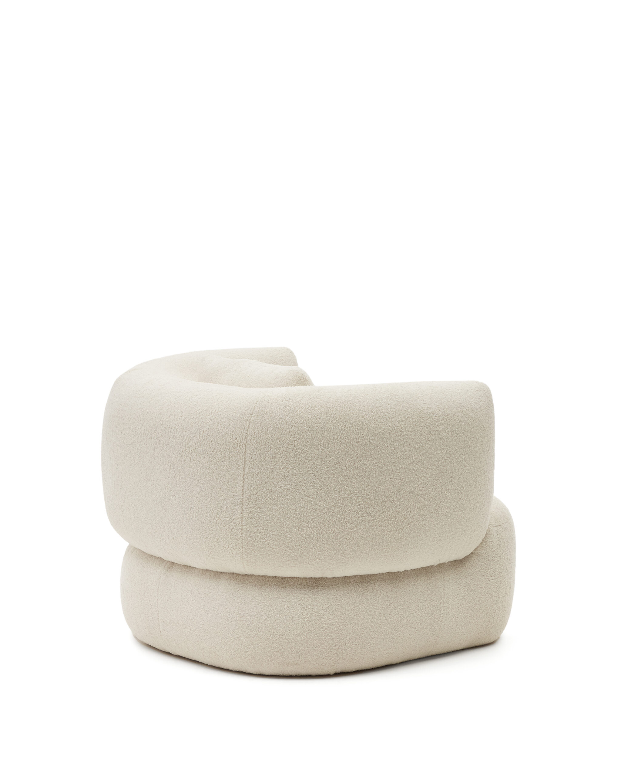 Martina is geïnspireerd door de trend van organische vormen en kronkelende lijnen en een strak geometrisch ontwerp met gebogen en afgeronde volumes, waardoor het superieur comfort en elegantie uitstraalt. De 360º draaistoel valt op door zijn warme en zacht aanvoelende bekleding met bouclé-effect, gemaakt van 100% gerecycled polyester. Elke meter bekleding bevat minstens 32 gerecyclede flessen van 500 ml. Bovendien is de stof zeer slijtvast, wat zorgt voor een onberispelijk uiterlijk en een lange levensduur, ideaal voor dagelijks gebruik. De gemiddeld harde zitting bestaat uit een combinatie van banden en schuim met een dichtheid van 30 kg/m3 en is ontworpen voor een lange levensduur. De rugleuning bevat schuim van 20 kg/m3 voor een comfortabele en omhullende ondersteuning. De leverancier van de stof is Global Recycled Standard-gecertificeerd, wat minder gebruik van grondstoffen en nieuw materiaal garandeert, en het OEKO-TEX® STANDARD 100-certificaat staat voor ecologisch veilige en milieuverantwoorde productie. De structuur combineert stevigheid en betrouwbaarheid dankzij het FSC Mix Credit-gecertificeerd hout, gemaakt van een mix van materialen uit FSC-gecertificeerde bossen en FSC-gecontroleerd hout. De lokale productie in Europa zorgt ervoor dat er minder CO2 wordt uitgestoten en het milieu minder wordt belast.