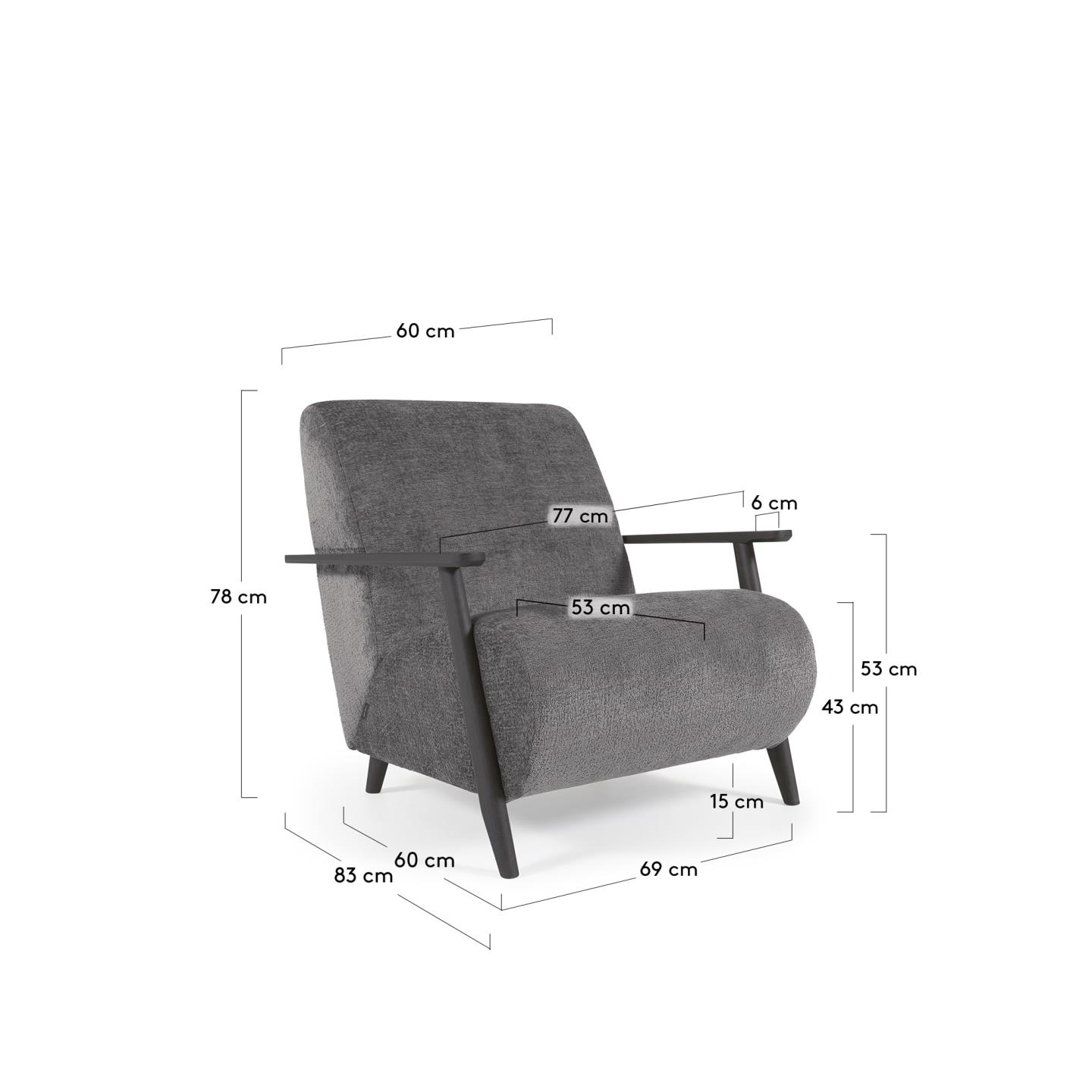 Glamorous Chenille zou er altijd goed uitzien op Meghan. Een van de meest populaire stoffenvan dit moment, de super-zachte bekleding contrasteert met het blootgestelde frame van de massieve armleuningen met wengé afwerking.