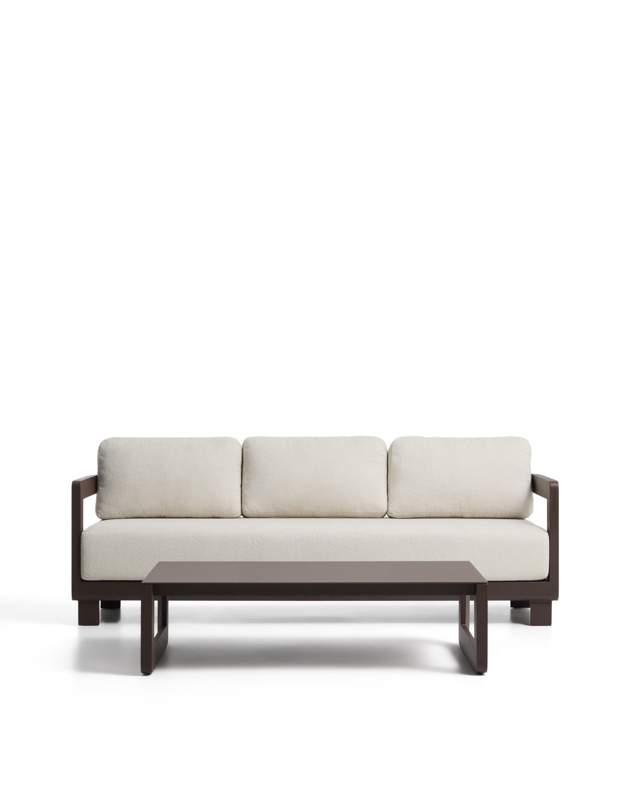 De Nerano-collectie is ontworpen voor binnen- en buitenruimtes. De aluminium structuur is licht en sterk en behoudt zijn kleur en vorm en is bestand tegen oxidatie, corrosie en blootstelling aan de zon. De kussens hebben afneembare hoezen en zijn gemakkelijk te verwijderen, en kunnen gemakkelijk worden opgeborgen als ze niet worden gebruikt of op regenachtige dagen. Het meubel bevat bovendien plastic beschermers om de vloer te beschermen en het oppervlak na verloop van tijd in goede staat te houden.