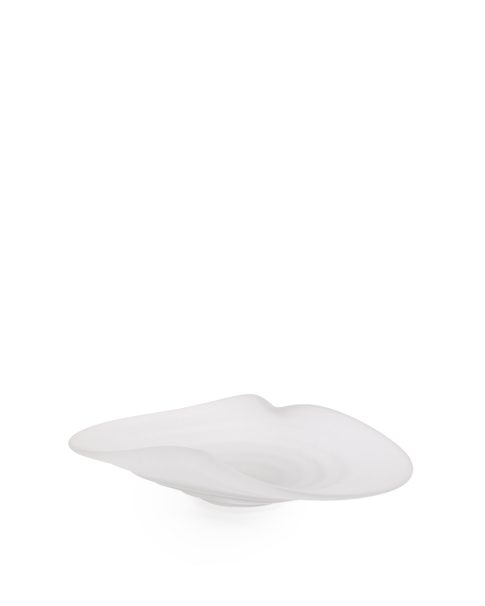 Met zijn vloeiende en golvende ontwerp speelt deze vaas van helder glas met organische lijnen die doen denken aan de beweging van water. De kristallijne afwerking benadrukt de rondingen en voegt visuele lichtheid toe, waardoor het een elegant en veelzijdig element is voor elke ruimte.