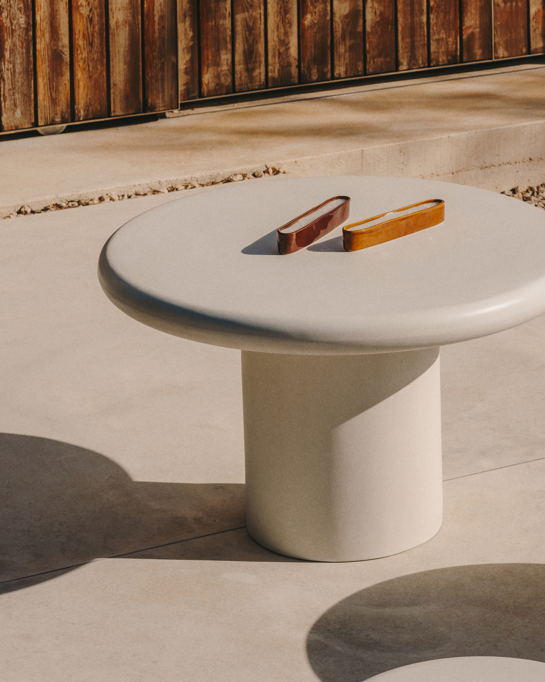 De Addaia-collectie, met organische vormen en afgeronde lijnen, voegt persoonlijkheid toe aan je omgeving. Hij is gemaakt van beton en is weerbestendig, zodat je er zowel binnen als buiten van kunt genieten.