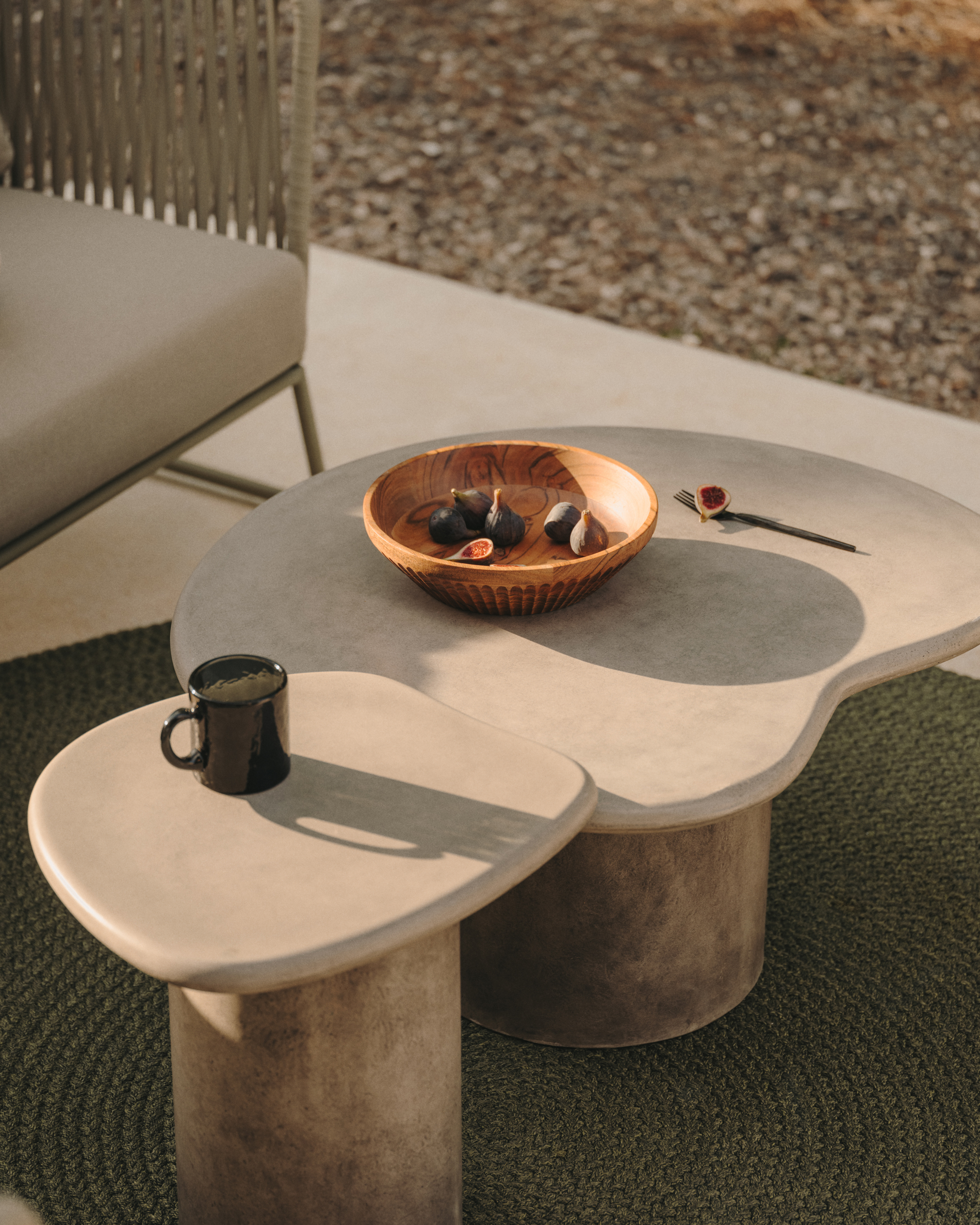 De Macarella-collectie, met minimalistische invloeden en organische lijnen, voegt persoonlijkheid toe aan je omgeving. De meubels zijn gemaakt van beton en zijn weerbestendig, zodat je er zowel binnen als buiten van kunt genieten.
