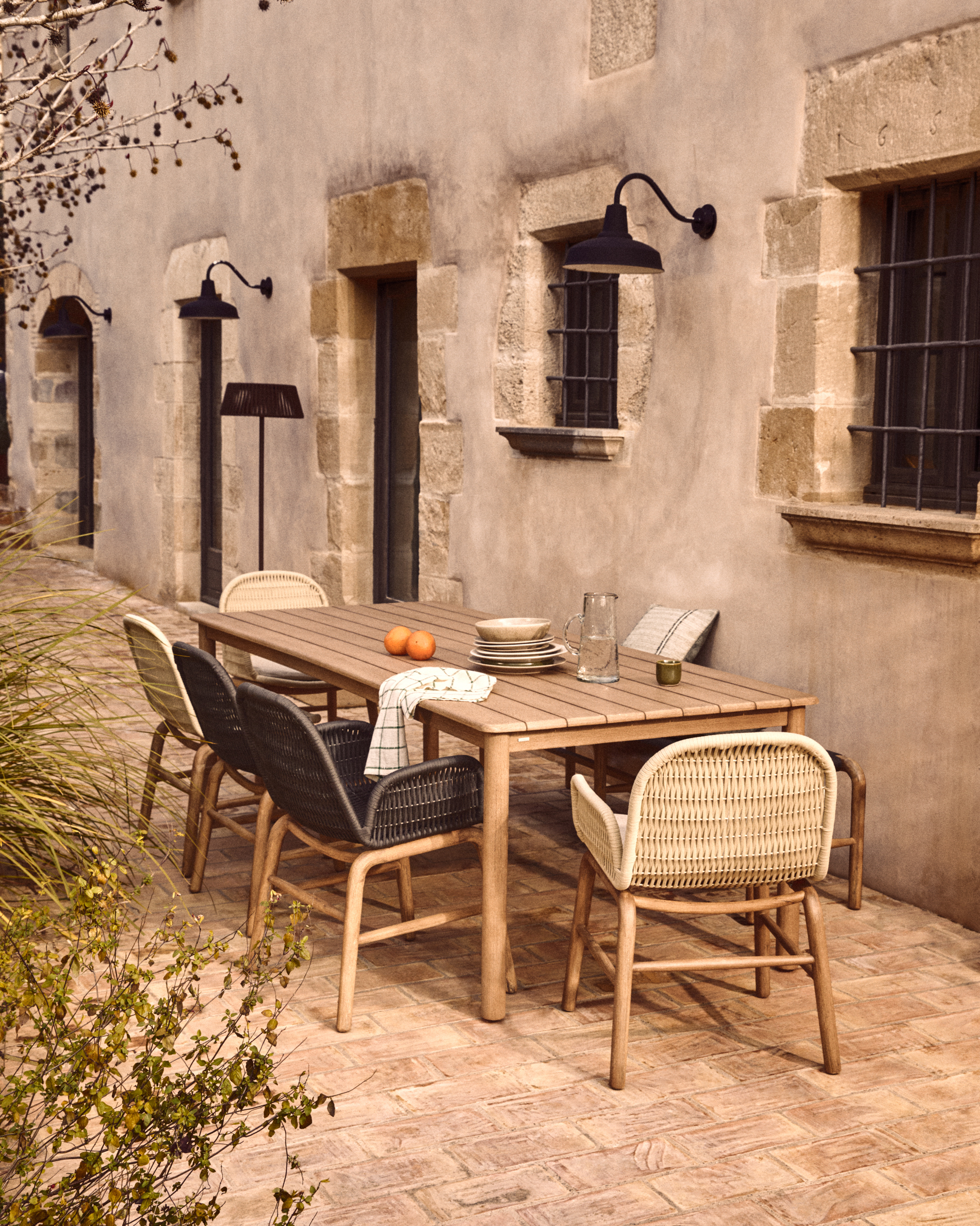 De Sori set met 6 Alipa stoelen is gemaakt van FSC™ 100%-gecertificeerd massief acaciahout, afkomstig uit verantwoord beheerde bossen. Een voorstel voor buitengebruik, waarbij acaciahout zijn hoge bestendigheid en duurzaamheid toont door vocht en de daaruit voortkomende micro-organismen te verdragen zonder stabiliteit of uitstraling te verliezen. De geborstelde afwerking van de tafel geeft textuur aan het houten oppervlak. De zittingen van de stoelen zijn met de hand gevlochten met UV-bestendig touw en bieden textuur en comfort, terwijl hun eigenschappen in de loop van de tijd behouden blijven. Om het hout in optimale conditie te houden en het uiterlijk te behouden, raden we aan om minstens één keer per jaar de Sterina houtbeschermer aan te brengen. Eenvoudig onderhoud helpt de kwaliteiten intact te houden en lang van de set te genieten.