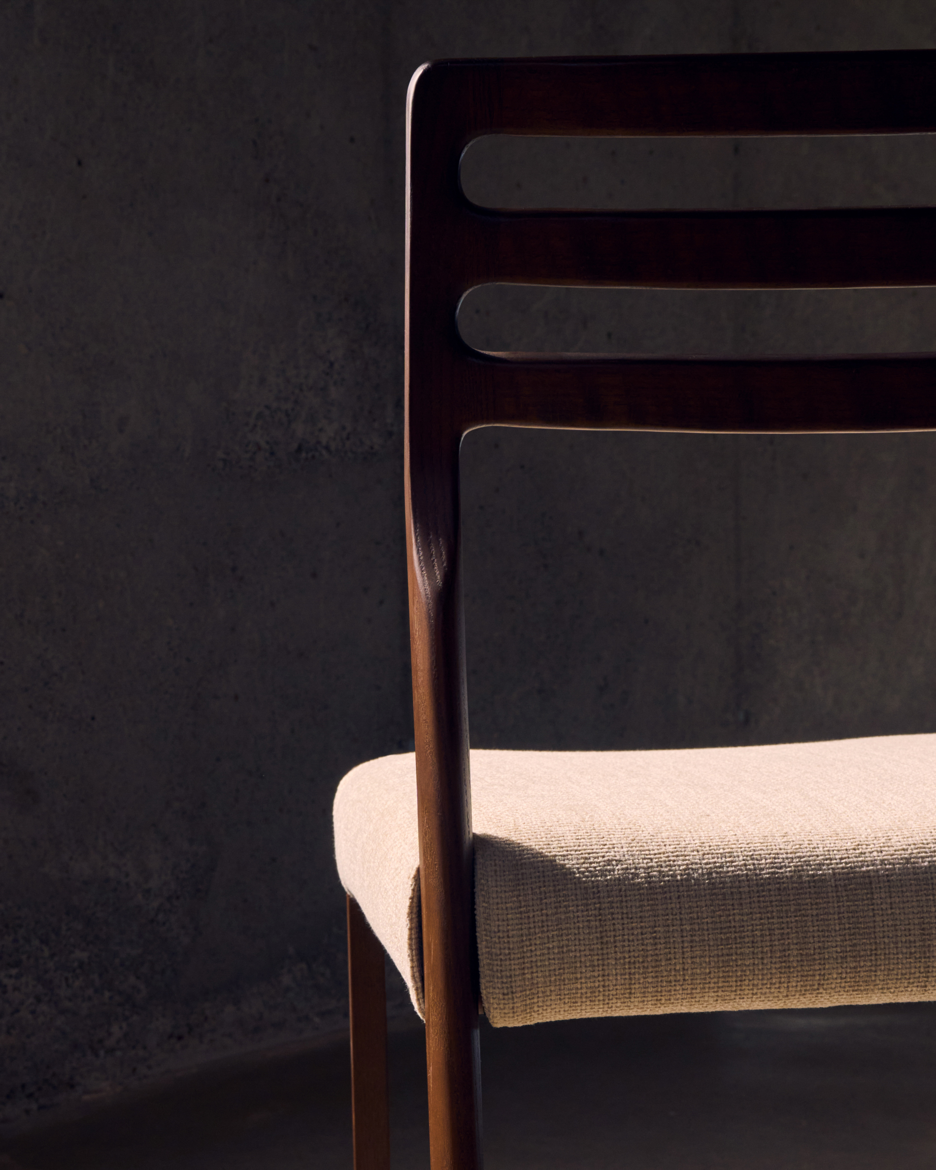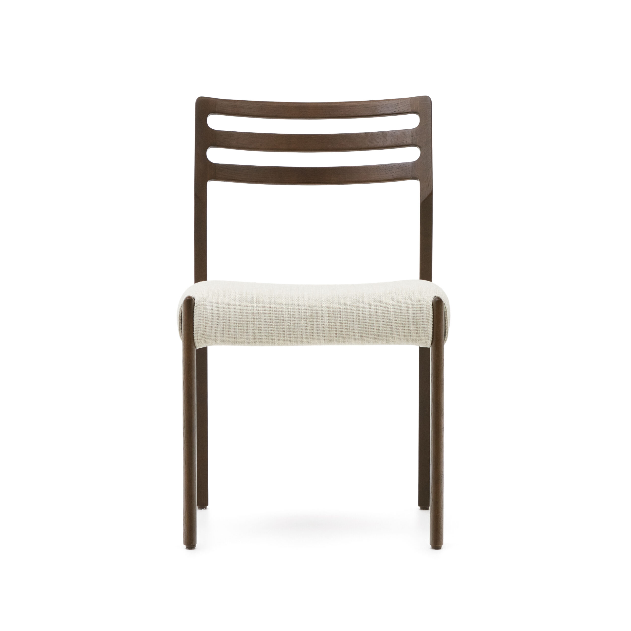 Stoel Cudia combineert chenille met massief eikenhout en valt op vanwege zijn moderne, Scandinavische design: een minimalistische, lichte structuur met eenvoudige lijnen. De perfecte balans tussen functionaliteit en elegantie.