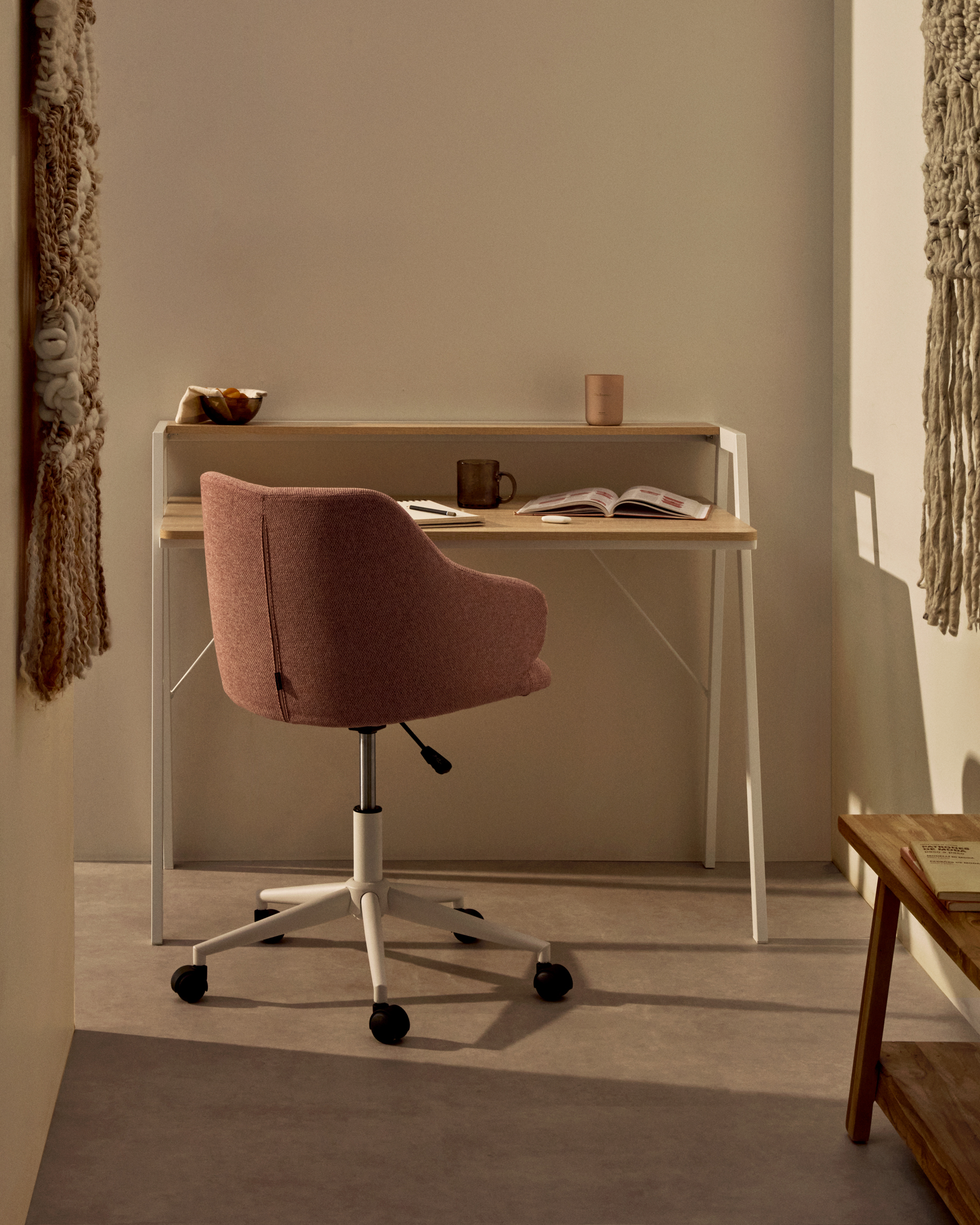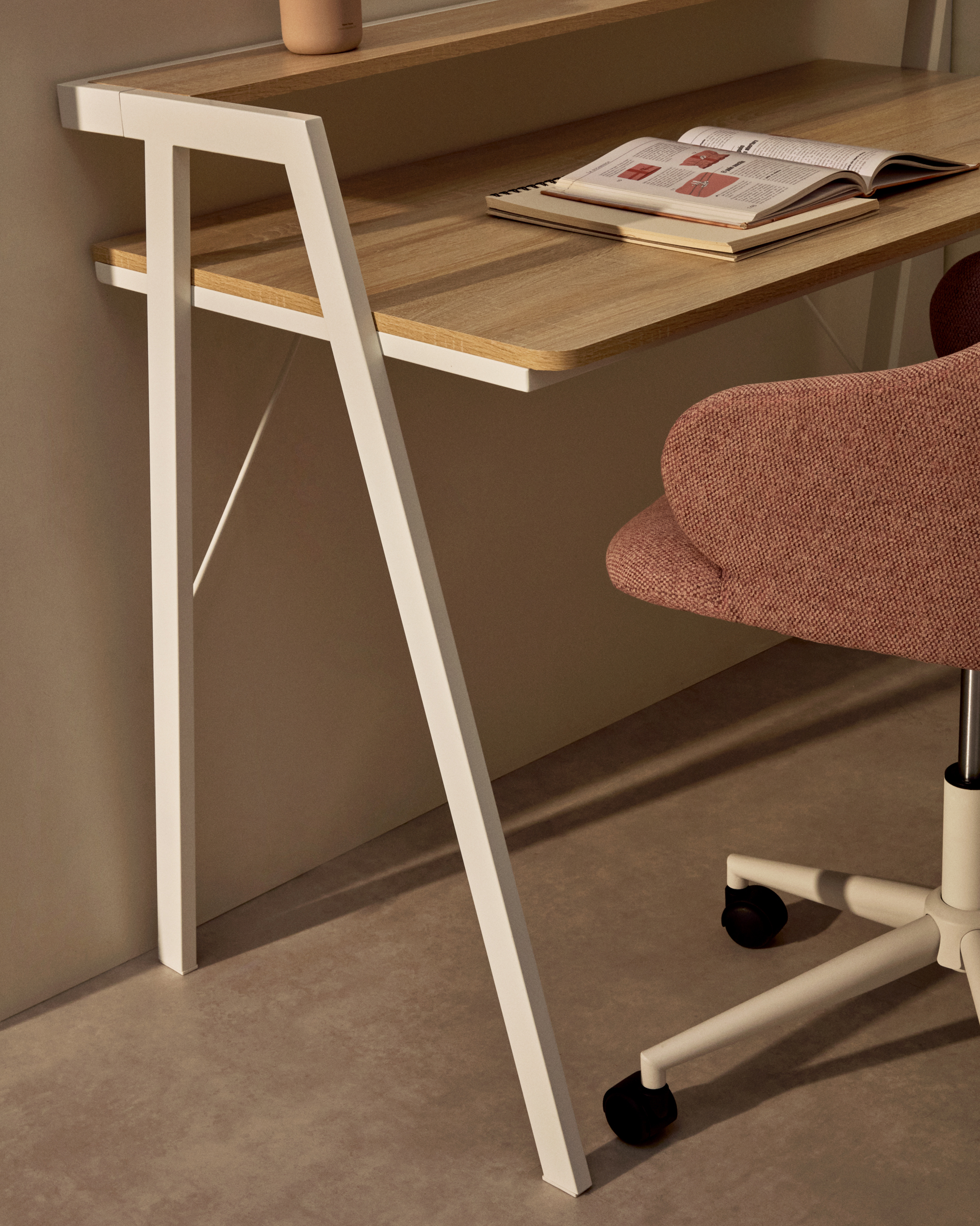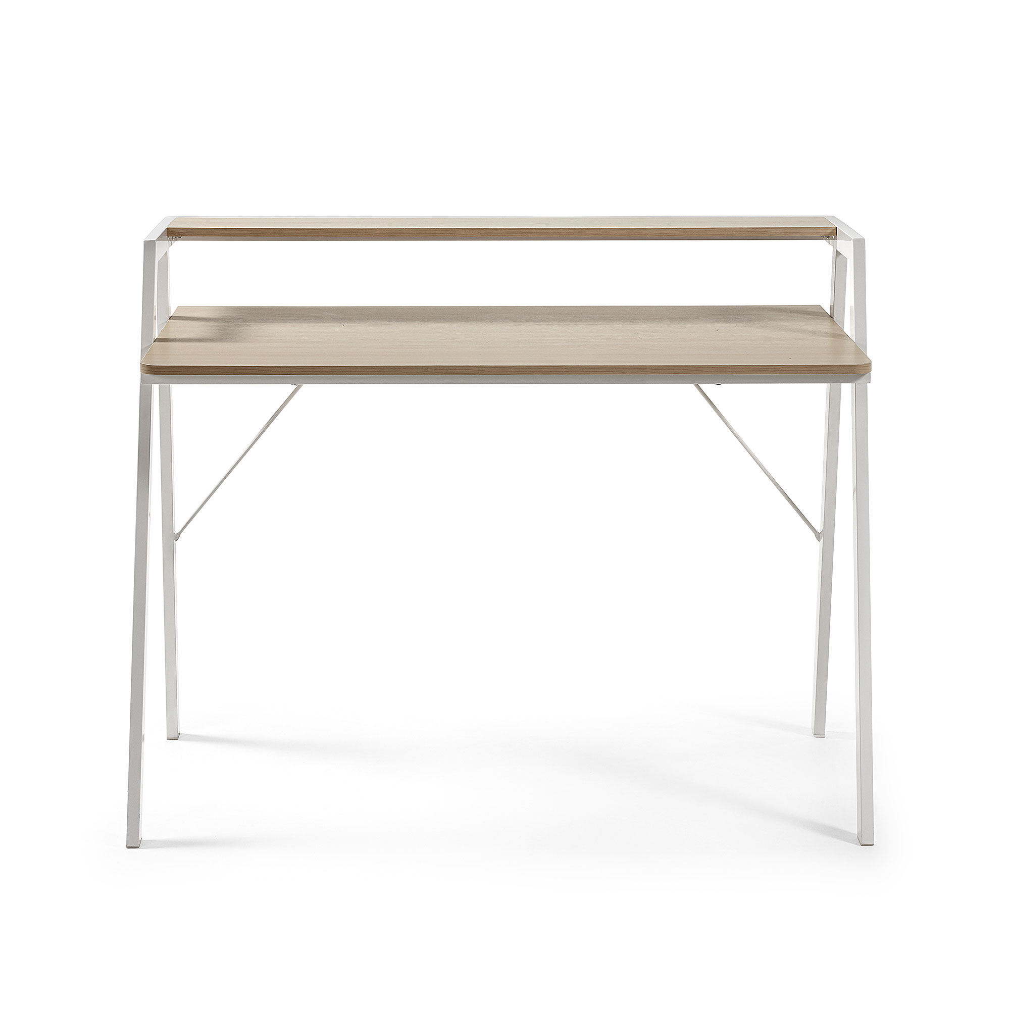 Het tafel Aarhus is een stalen structuur met een blad van natuurlijk hout. Daarnaast heeft hij een plank van dezelfde grootte, zodat je meer plaats hebt voor je bureau-artikelen. Work hard, live passion.