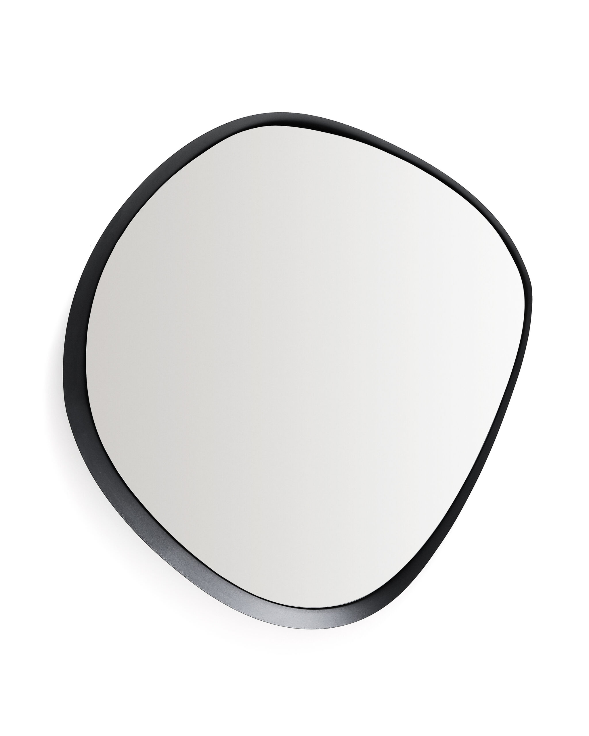 Deze spiegel heeft eenvoud opnieuw uitgevonden met een eigentijds, organisch ontwerp, omlijst door een metalen lijst die textuur en persoonlijkheid toevoegt. Het asymmetrische silhouet breekt met monotonie en past zich aan verschillende omgevingen aan, zoals de hal, slaapkamers of badkamers, en zorgt voor karakter zonder de ruimte rommelig te maken. Eenvoudig en veilig aan de muur te bevestigen met geïntegreerde haken aan de achterkant.