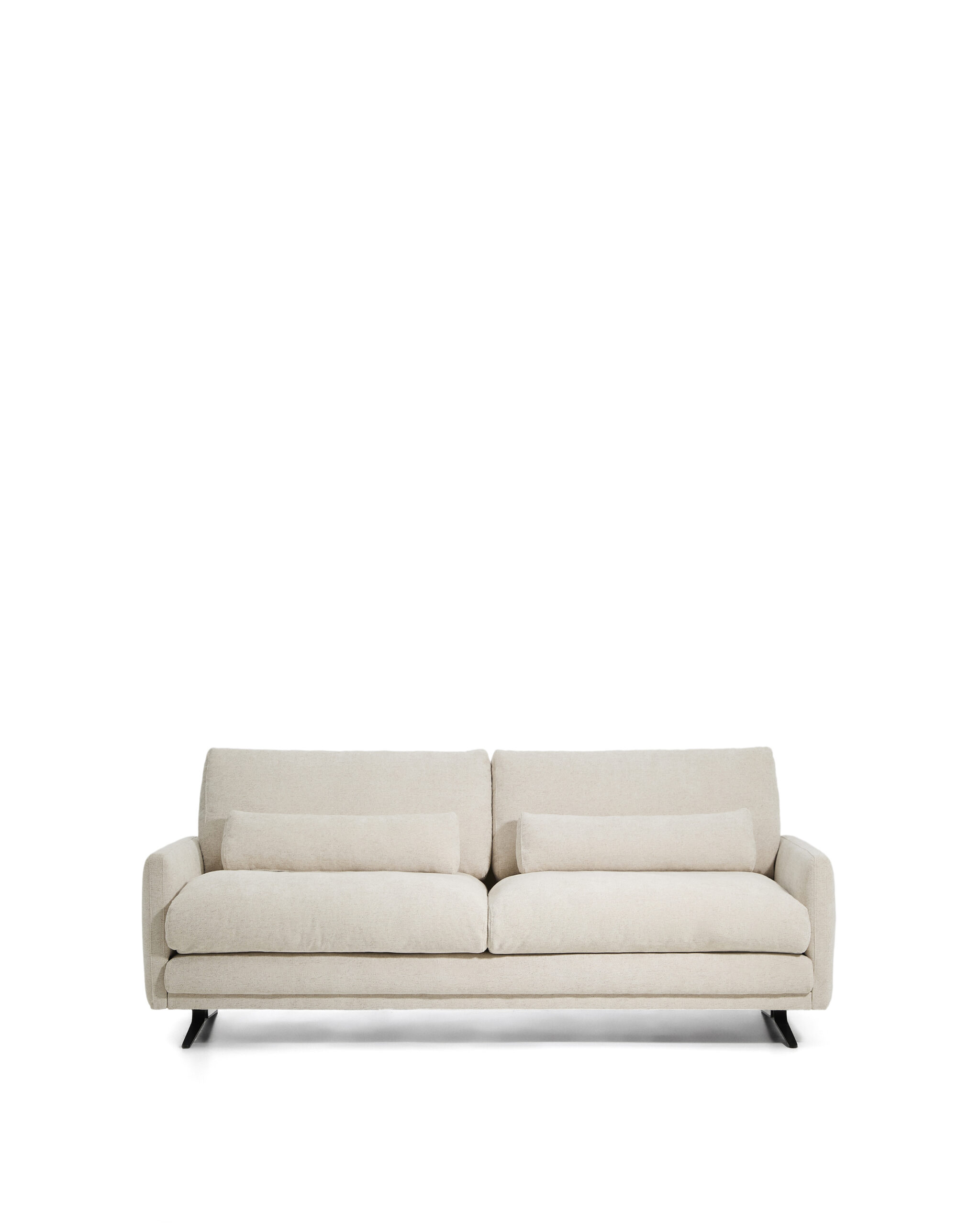 De Veliro bank combineert de tijdloze elegantie van lijnen van halverwege de 20e eeuw met nieuwe proporties, ontworpen om maximaal comfort te bieden in elke omgeving. Hij is bekleed met chenille stof met een grove structuur, die een hoge slijtvastheid en lichtbestendigheid biedt, wat garant staat voor een grote duurzaamheid en een onberispelijk uiterlijk na verloop van tijd. Dankzij de vlekbestendige behandeling en de machinewasbaarheid is deze bank perfect voor dagelijks gebruik en voor omgevingen waar functionaliteit net zo belangrijk is als stijl. De zitting heeft een zachte hardheid dankzij Air System-schuimmix met een dichtheid van 28 kg/m³ en een hoge duurzaamheid en veerkracht, samen met vezels met donseffect voor een omhullende zitervaring en een veringssysteem met singels. De kussens in de rugleuning en onderrug zijn gevuld met vezels met donseffect. Bovendien zijn de hoezen van de zitting, rugleuning en lendekussens afneembaar voor eenvoudig schoonmaken en onderhoud. De interne structuur van grenenhout is FSC Mix Credit-gecertificeerd, gemaakt van een combinatie van materialen uit FSC-gecertificeerde bossen en FSC-gecontroleerd hout. De stalen poten, met een elegante zwarte matte, microgetextureerde poedercoating, geven het geheel stabiliteit en een eigentijds karakter. Geproduceerd in Spanje, is deze bank een veelzijdig meubelstuk dat zich dankzij het evenwichtige ontwerp en het comfortabele zitvlak moeiteloos in elke ruimte laat integreren en zich aanpast aan verschillende levensstijlen.
