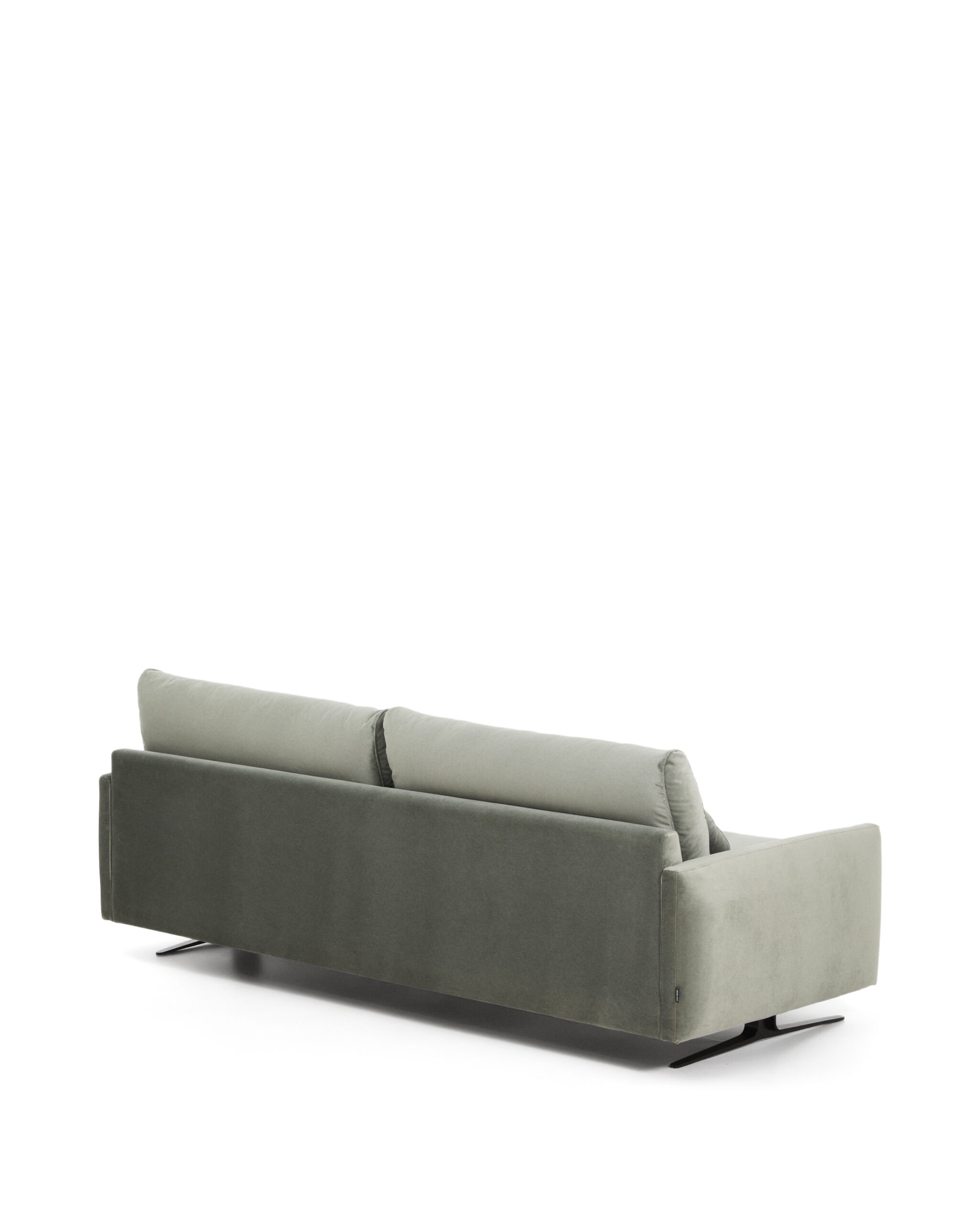 De Veliro bank combineert de tijdloze elegantie van lijnen van halverwege de 20e eeuw met nieuwe proporties, ontworpen om maximaal comfort te bieden in elke omgeving. De fluwelen bekleding met een verwassen look en matte afwerking, 20% katoen, is zacht en zeer slijtvast en lichtbestendig, en kan in de wasmachine worden gewassen op een delicaat programma. De stof is afkomstig van een leverancier die gecertificeerd is volgens OEKO-TEX® STANDARD 100 voor ecologisch veilige en milieuverantwoorde productie. De zitting heeft een zachte hardheid dankzij Air System-schuimmix met een dichtheid van 28 kg/m³ en een hoge duurzaamheid en veerkracht, samen met vezels met donseffect voor een omhullende zitervaring en een veringssysteem met riemen. De kussens in de rugleuning en onderrug zijn gevuld met vezels met donseffect. Bovendien zijn de hoezen van zitting, rugleuning en lendenkussens afneembaar voor eenvoudig schoonmaken en onderhoud. De interne structuur van grenenhout is FSC Mix Credit-gecertificeerd, gemaakt van een combinatie van materialen uit FSC-gecertificeerde bossen en FSC-gecontroleerd hout. De stalen poten met een elegante zwarte, matte microstructuur poedercoating geven het stabiliteit en een eigentijds karakter. Geproduceerd in Spanje, deze bank is multifunctioneel en kan gemakkelijk in elke ruimte worden geplaatst dankzij het evenwichtige ontwerp en de zitting, ontworpen om veel comfort te bieden en zich aan te passen aan verschillende levensstijlen.