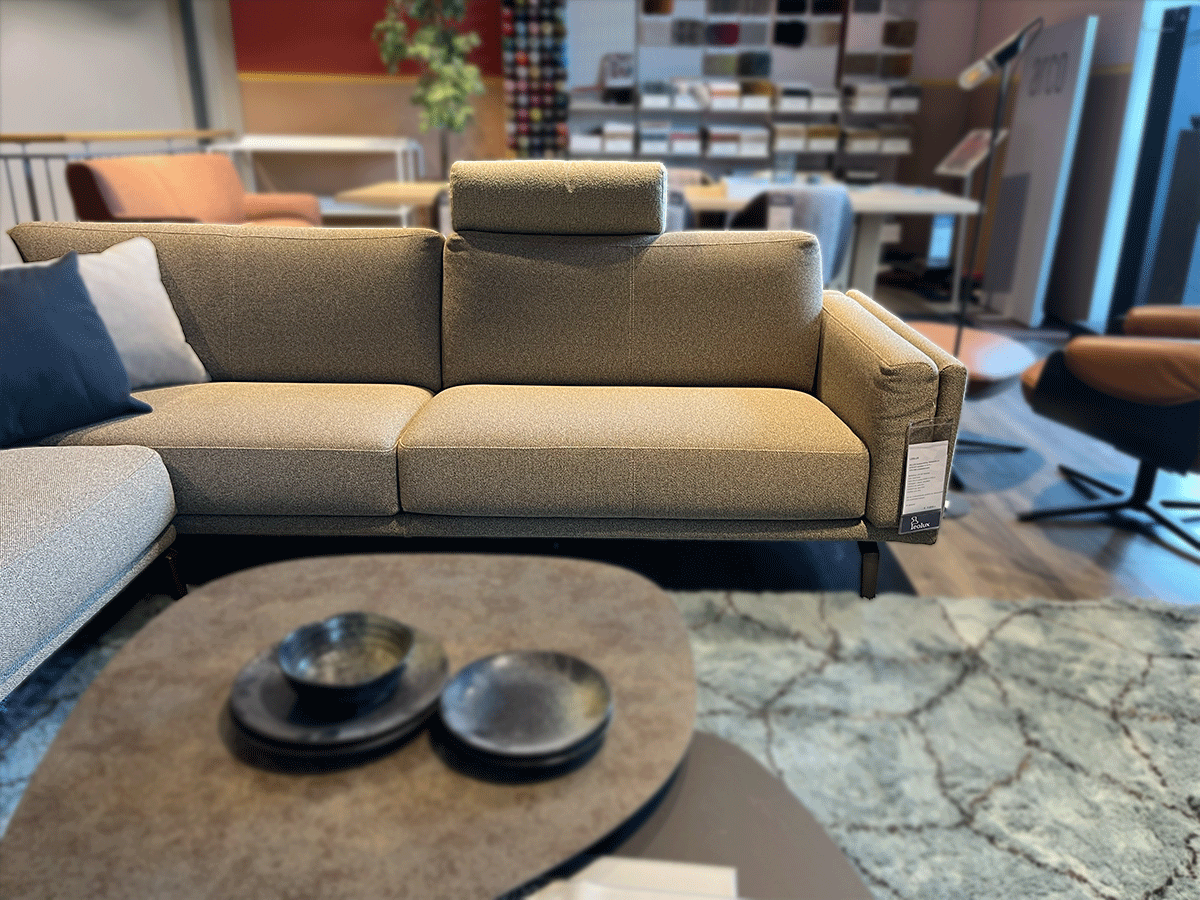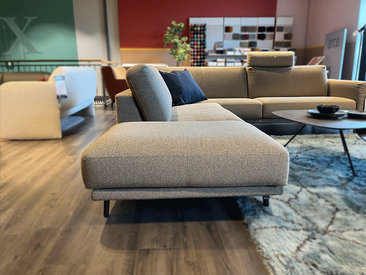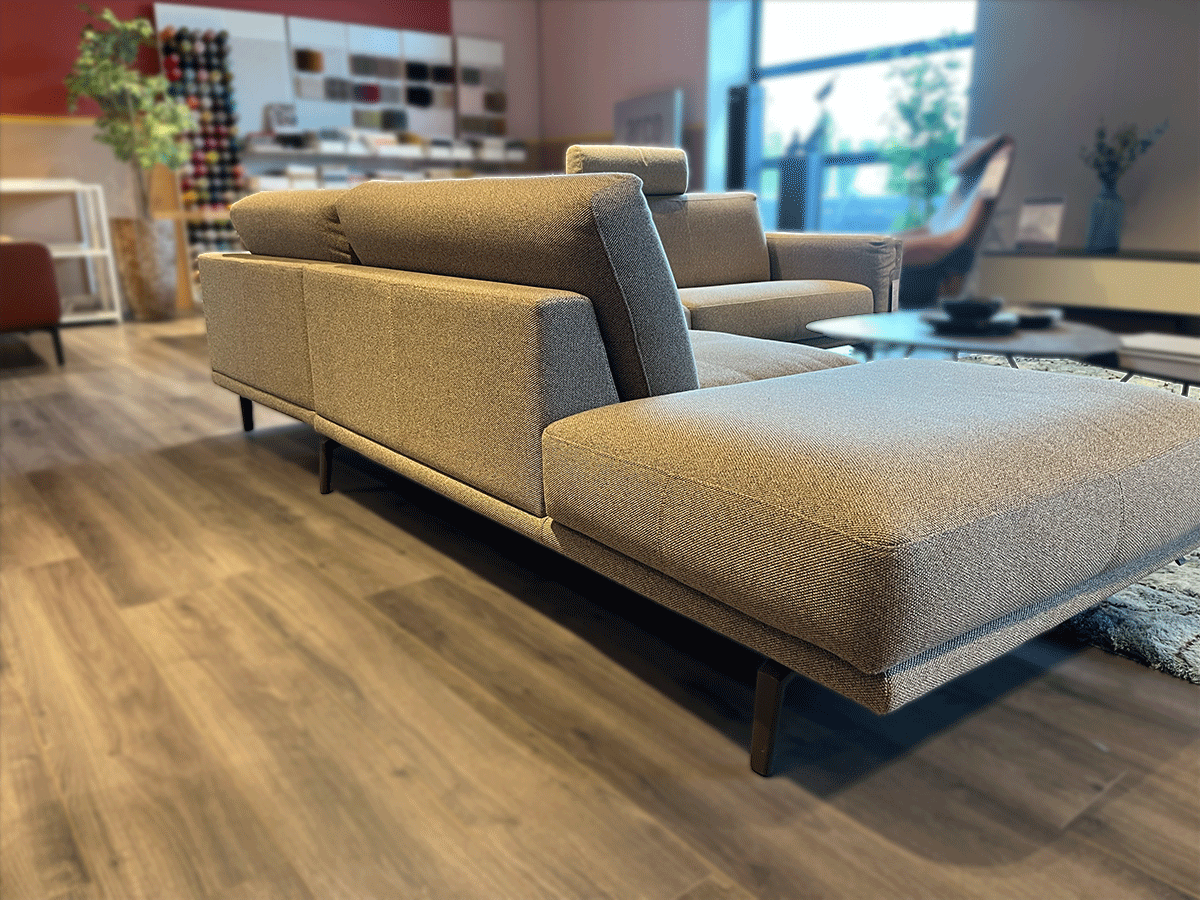 De Leolux Bellice hoekbank is als showroommodel snel leverbaar met zeer hoge korting.