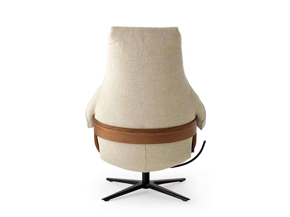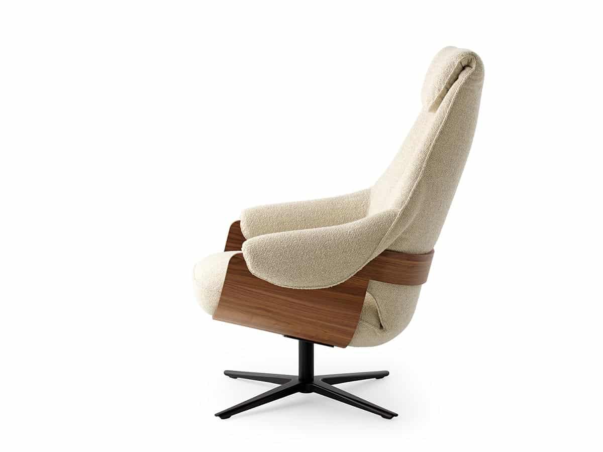 De ronde vormen en vloeiende overgangen geven deze fauteuil een uitnodigend karakter. De zitting en rug zijn ergonomisch gevormd en zorgen voor een natuurlijke ondersteuning van uw lichaam. Hierdoor ontstaat een comfortabele, ontspannen zithouding die perfect past bij lange avonden thuis.