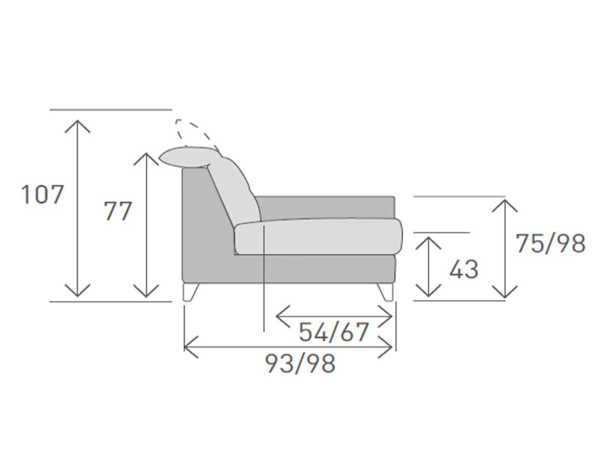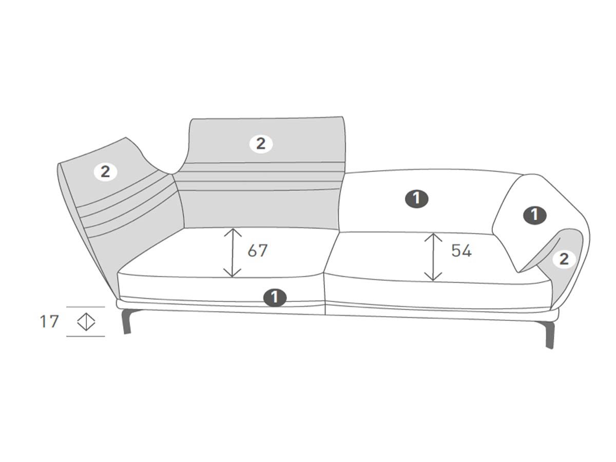 - Zitdiepte: 54/67 cm.