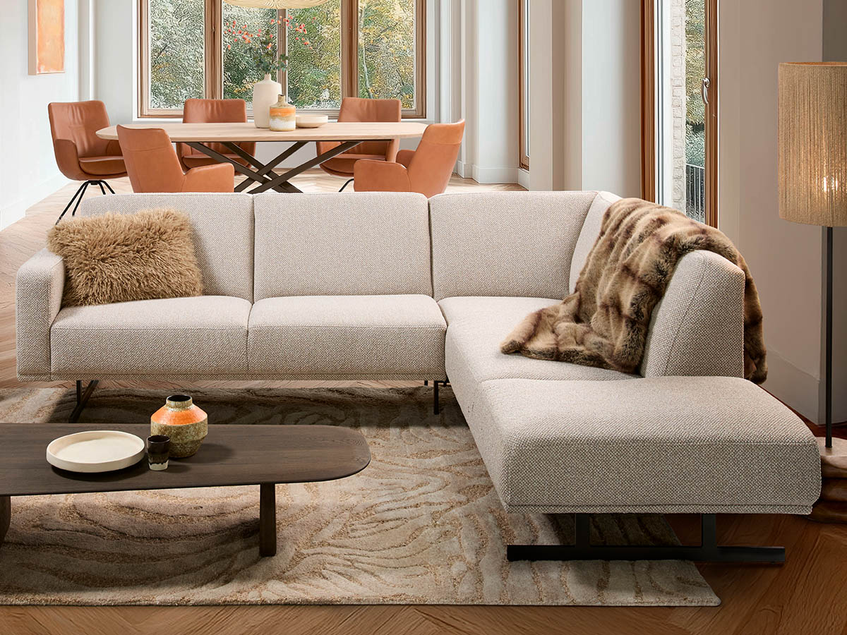 De materialen zijn gekozen met aandacht voor kwaliteit en duurzaamheid. Denk aan stevige frames, hoogwaardige schuimlagen en een afwerking die op niveau is. De stoffering kunt u volledig naar eigen wens samenstellen: van rijke stoffen in warme tinten tot frisse, eigentijdse kleuren die uw interieur laten sprankelen. De zitervaring is warm en ondersteunend, waardoor de bank zich moeiteloos aanpast aan uw manier van leven — ontspannen loungen, fijn zitten of uitgebreid natafelen.
