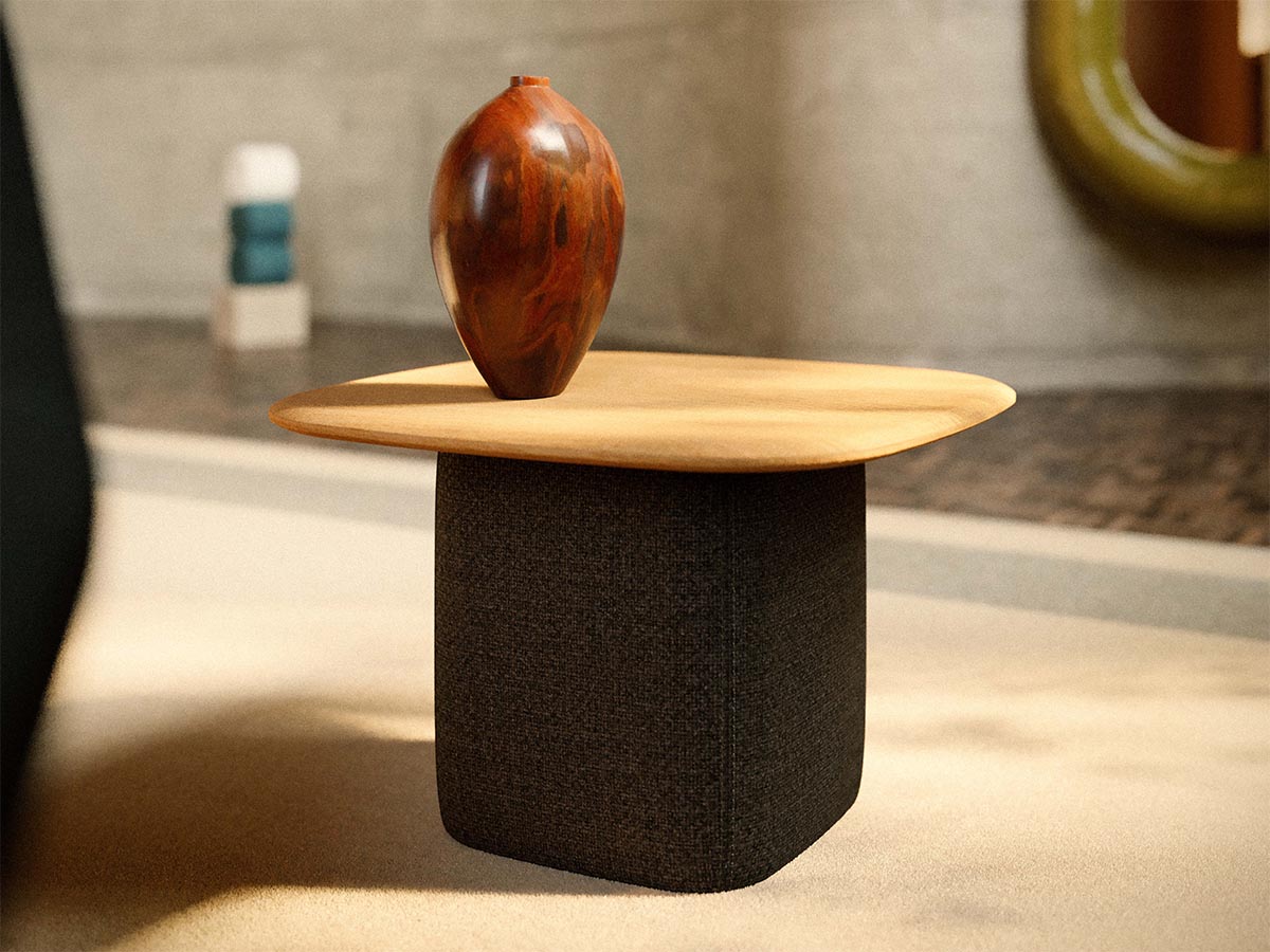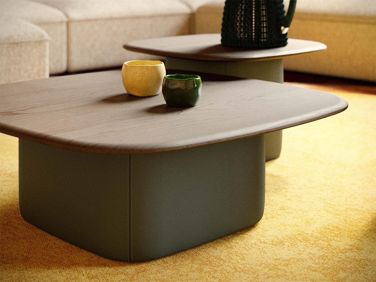 Dankzij de afgeronde hoeken van het blad oogt Zabaz zacht en uitnodigend, terwijl het ontwerp zich eenvoudig laat combineren met andere Pode-meubels. U kunt zelfs de stof of het leer van de basis laten aansluiten bij uw Pode bank voor een harmonieus geheel – of juist kiezen voor een contrasterende touch.