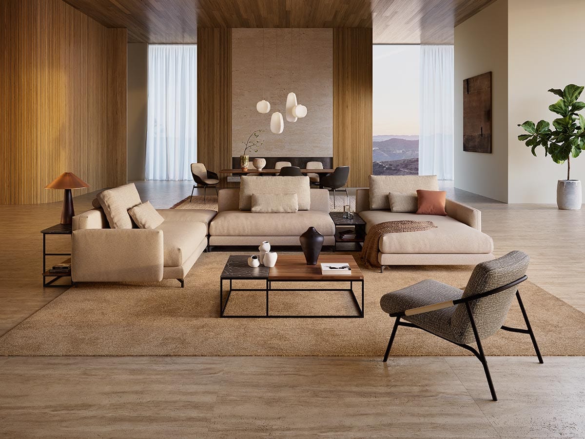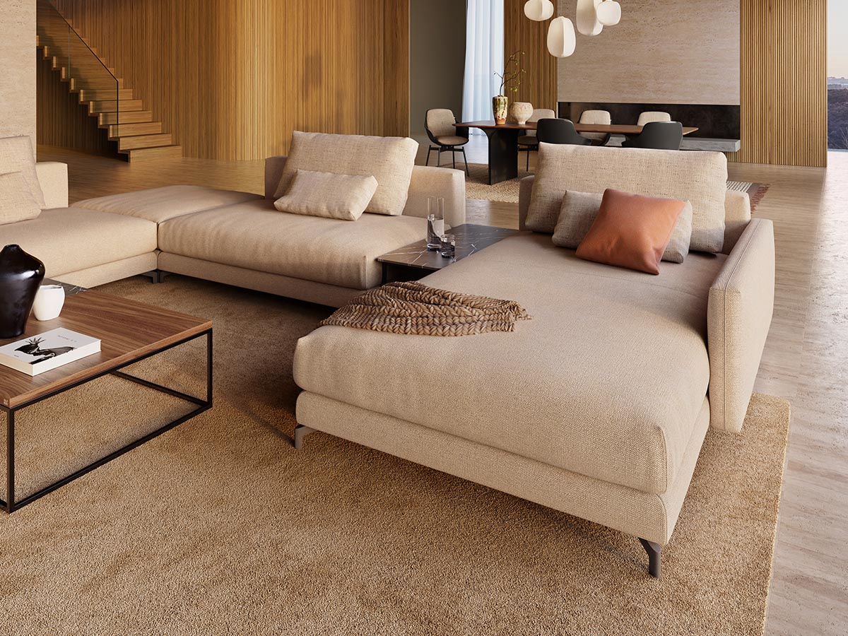 Dankzij de doordachte ergonomie biedt de Nuvola hoekbank een perfecte ondersteuning, of u nu languit ligt met een goed boek of gezellig samen bent met familie en vrienden. De brede armleuningen en het modulaire karakter maken deze bank zowel praktisch als stijlvol.