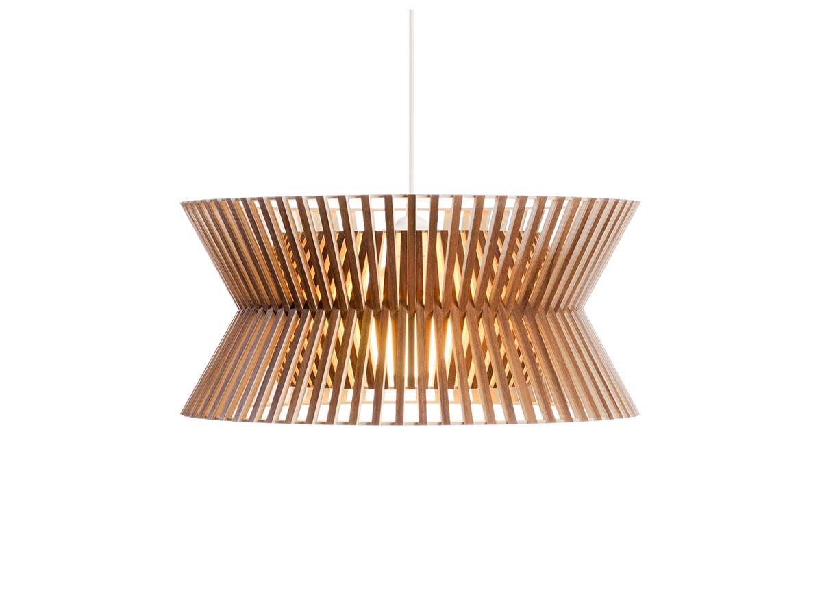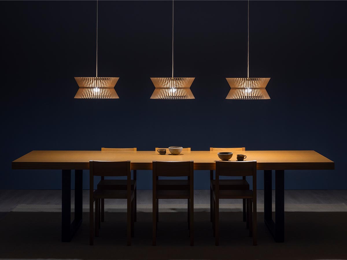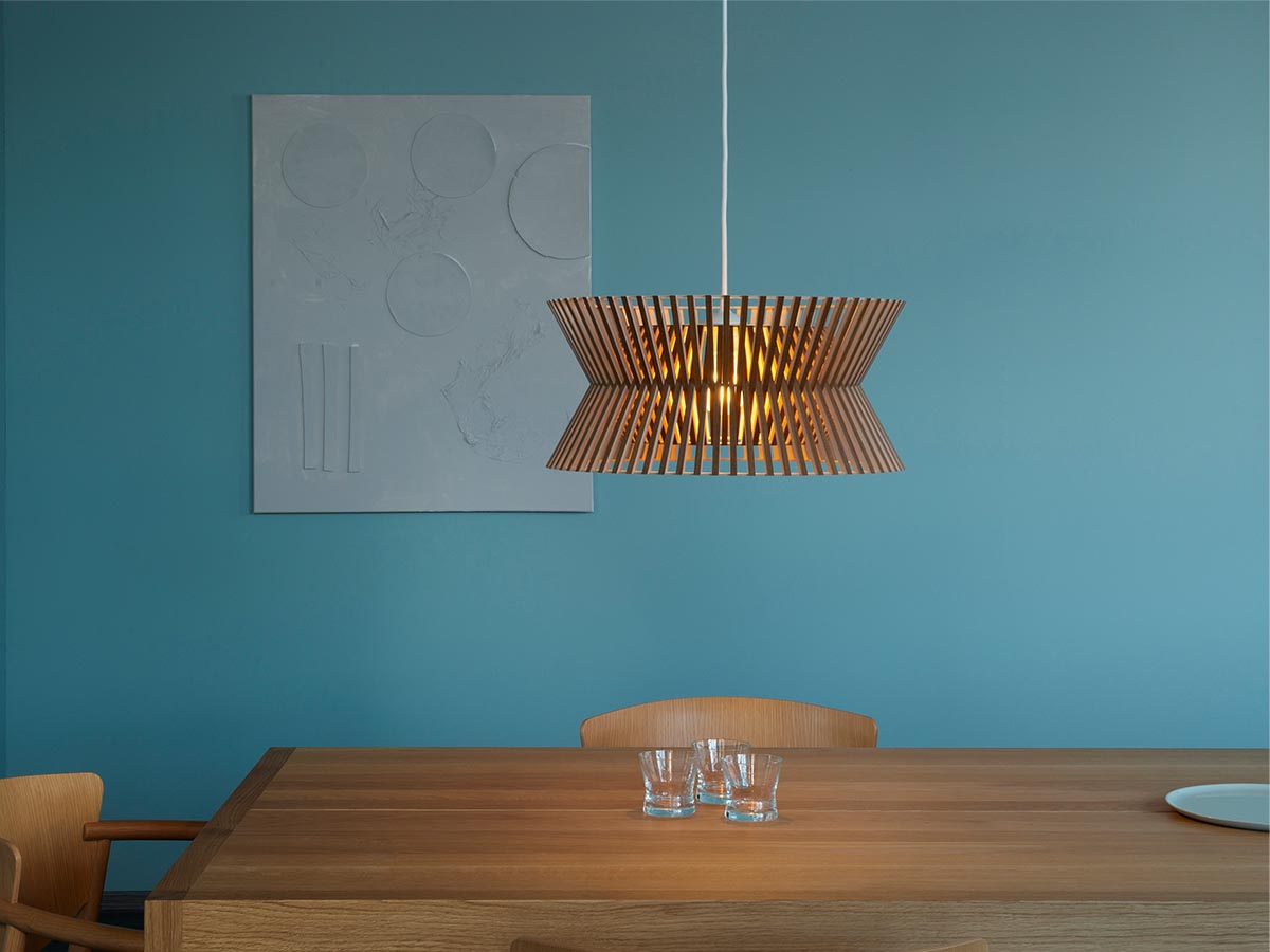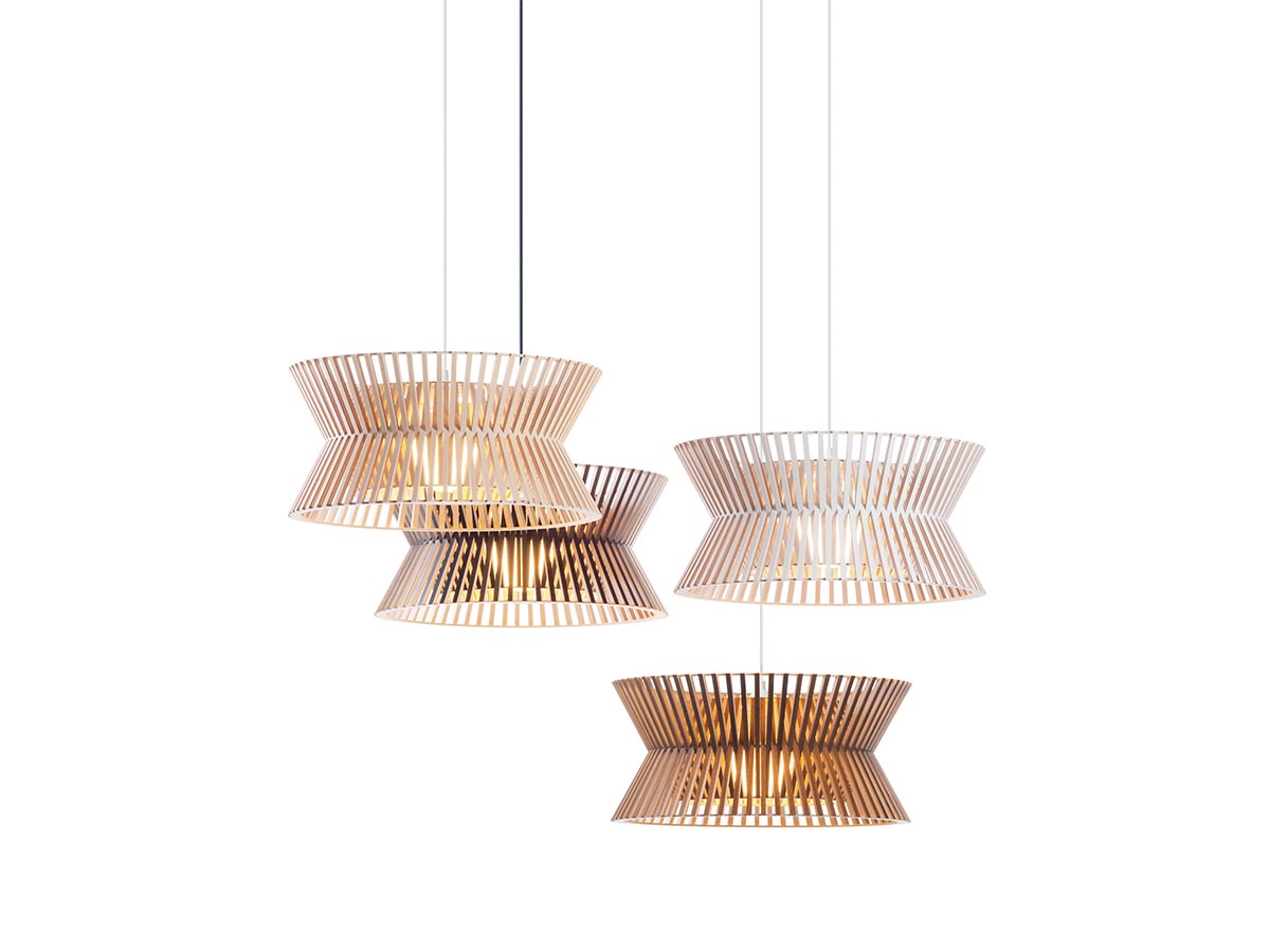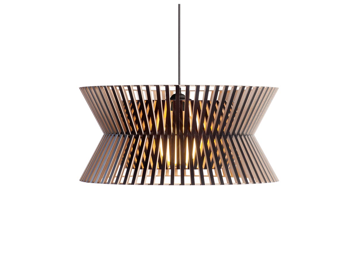 De Secto Kontro 600 hanglamp is een designpendel waarin minimalisme en warmte samenkomen. De namen “Kontro” refereert aan de kenmerken van contrast en balans, waarbij de lattenkap bestaande uit houten strips subtiel licht verweeft in het interieur.