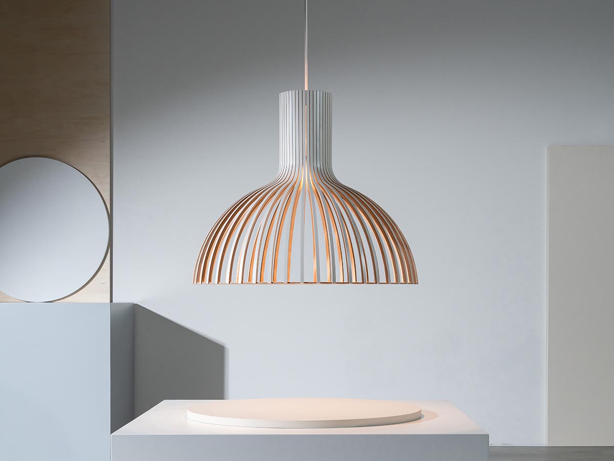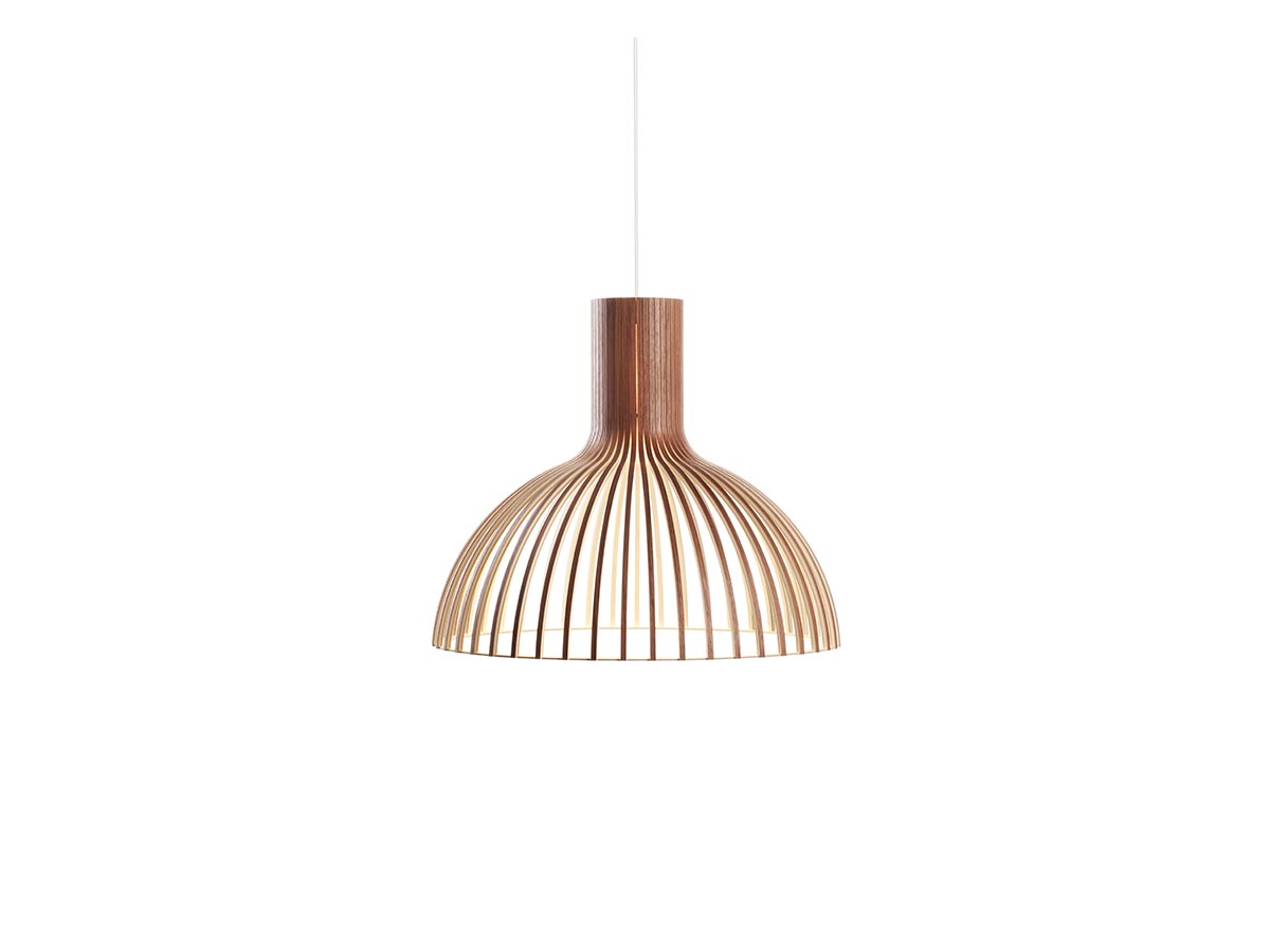 De Victo 4250 hanglamp is een meesterwerk in hout en licht van Secto Design. Met een hoogte van circa 48 cm en diameter circa 56 cm combineert hij bescheiden proporties met een rijke uitstraling. De lamp is vervaardigd uit vormgeperst berkhout, met alle afwerkingsopties zoals naturel, wit of zwart gelamineerd of walnootfineer.